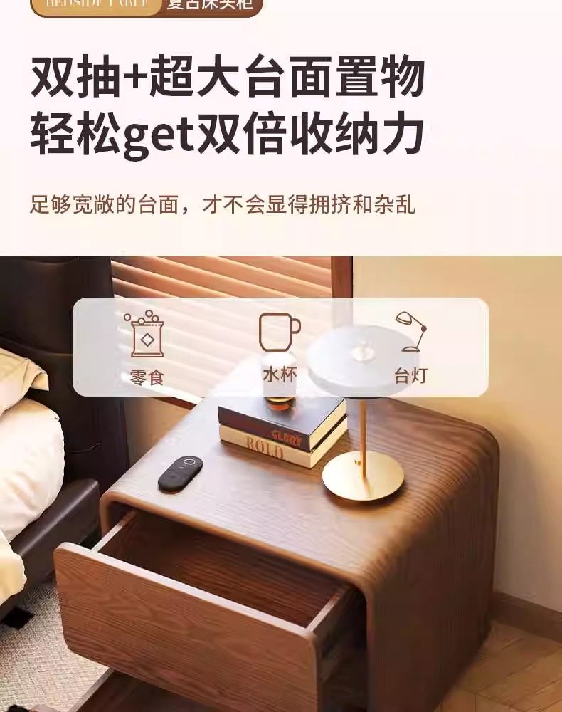 Light Luxury Solid Wood Bedside Table 2025 New Popular Cream Style Walnut Color Home Bedroom Bedside Storage Cabinet