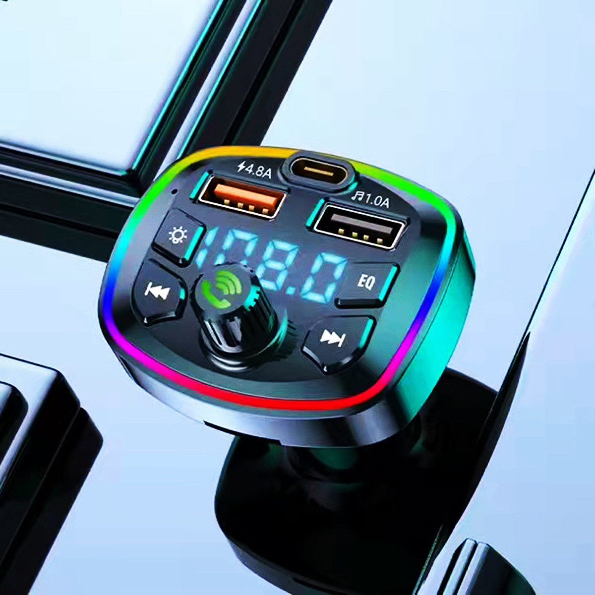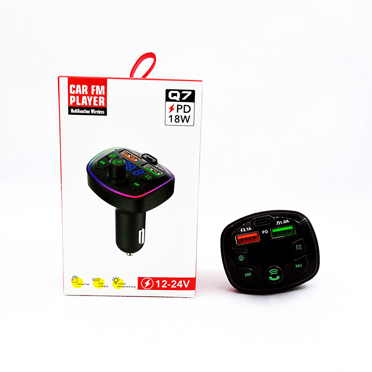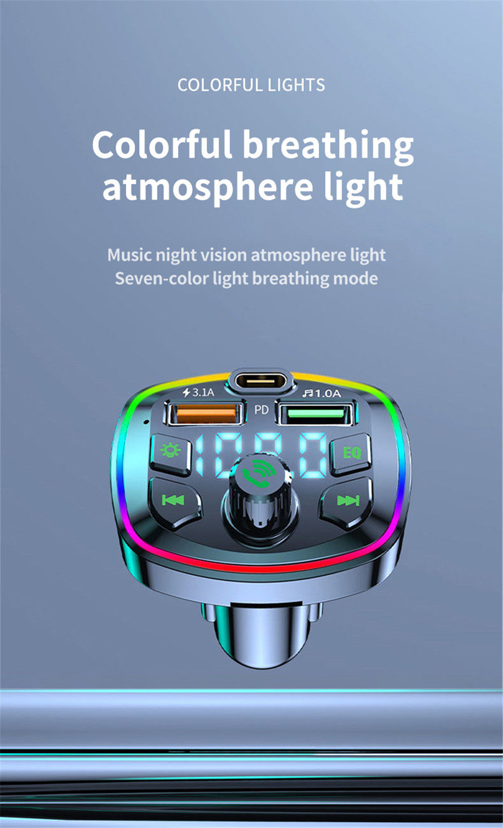 Q7 Colorful Atmosphere Light Car Mp3 Bluetooth Hands-Free 5.0 Dual Usbc Player Car Bluetooth Hands-Free Fm Transmitter