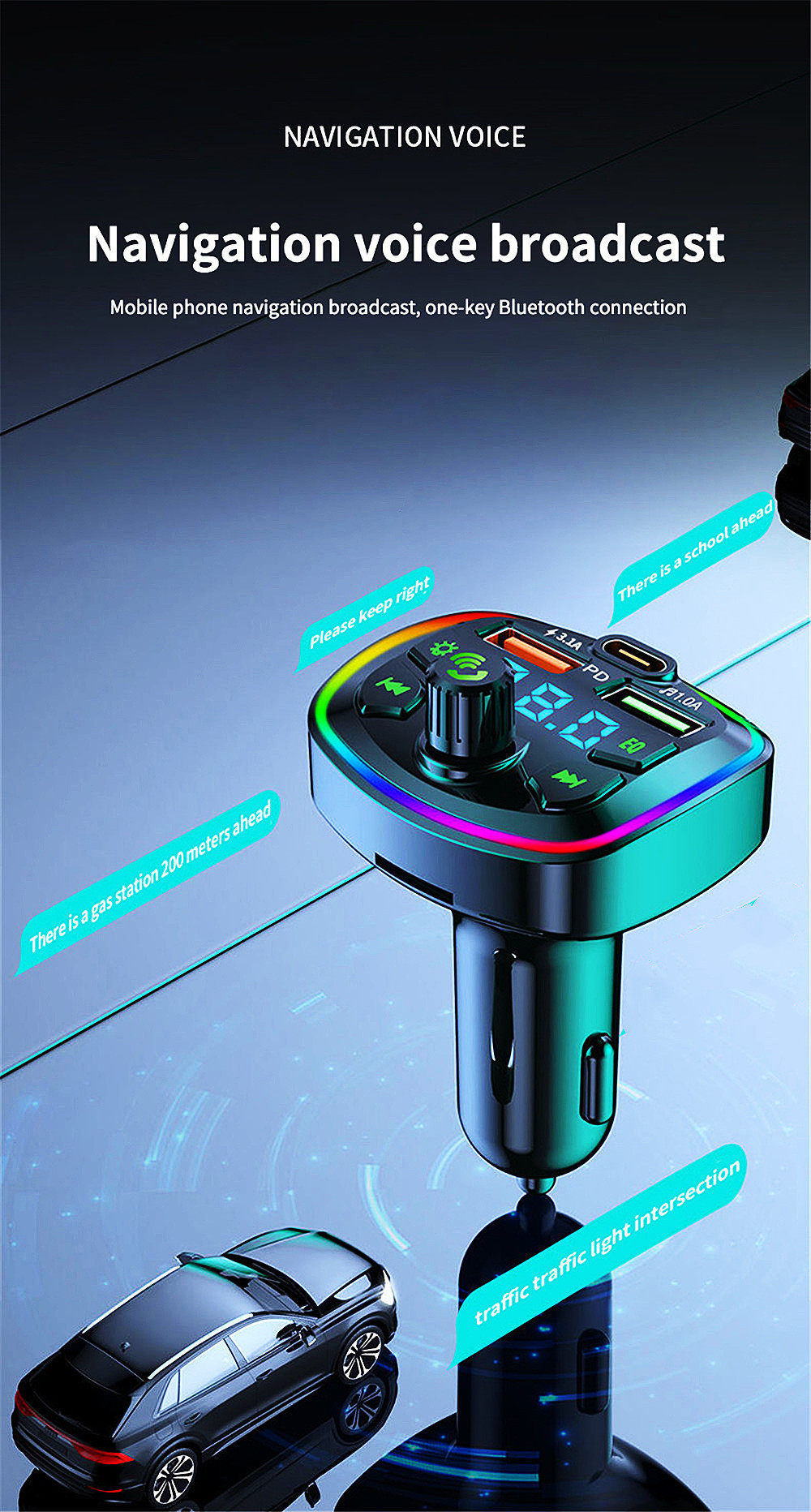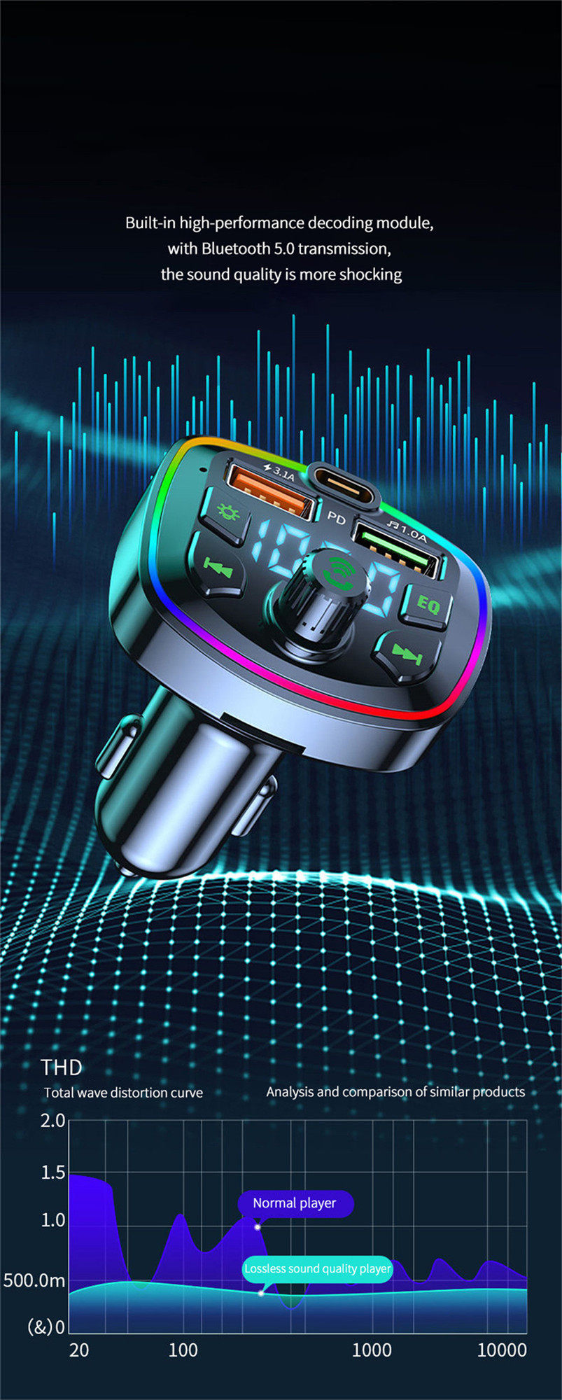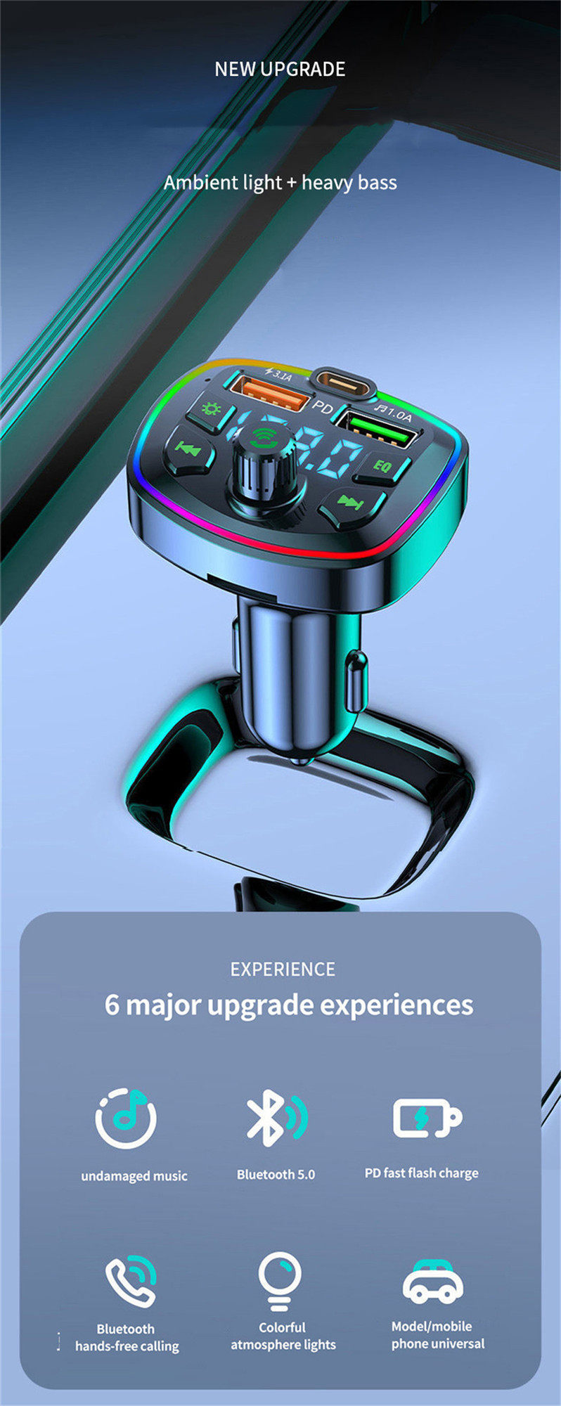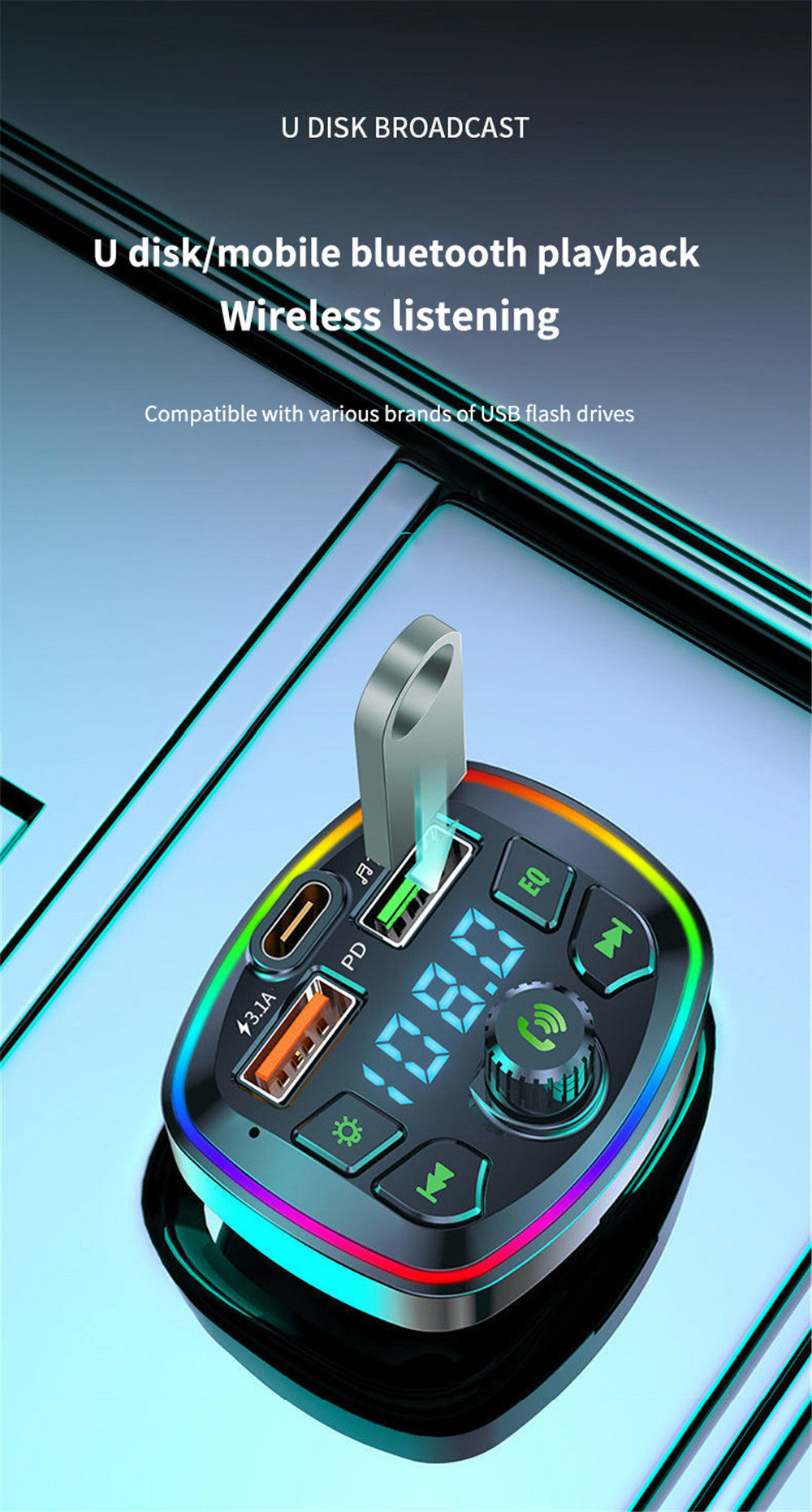 Q7 Colorful Atmosphere Light Car Mp3 Bluetooth Hands-Free 5.0 Dual Usbc Player Car Bluetooth Hands-Free Fm Transmitter