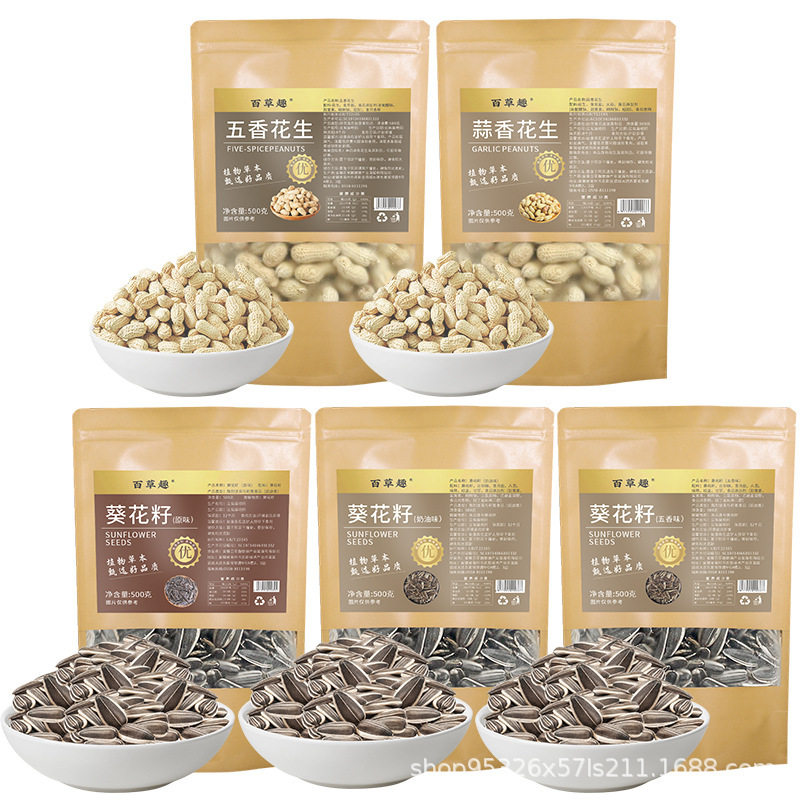 Baicaoqu Melon Seeds and Peanuts Daily Nuts Original Flavor Five-Spice Cream Melon Seeds Bulk Peanuts Wholesale Dropshipping