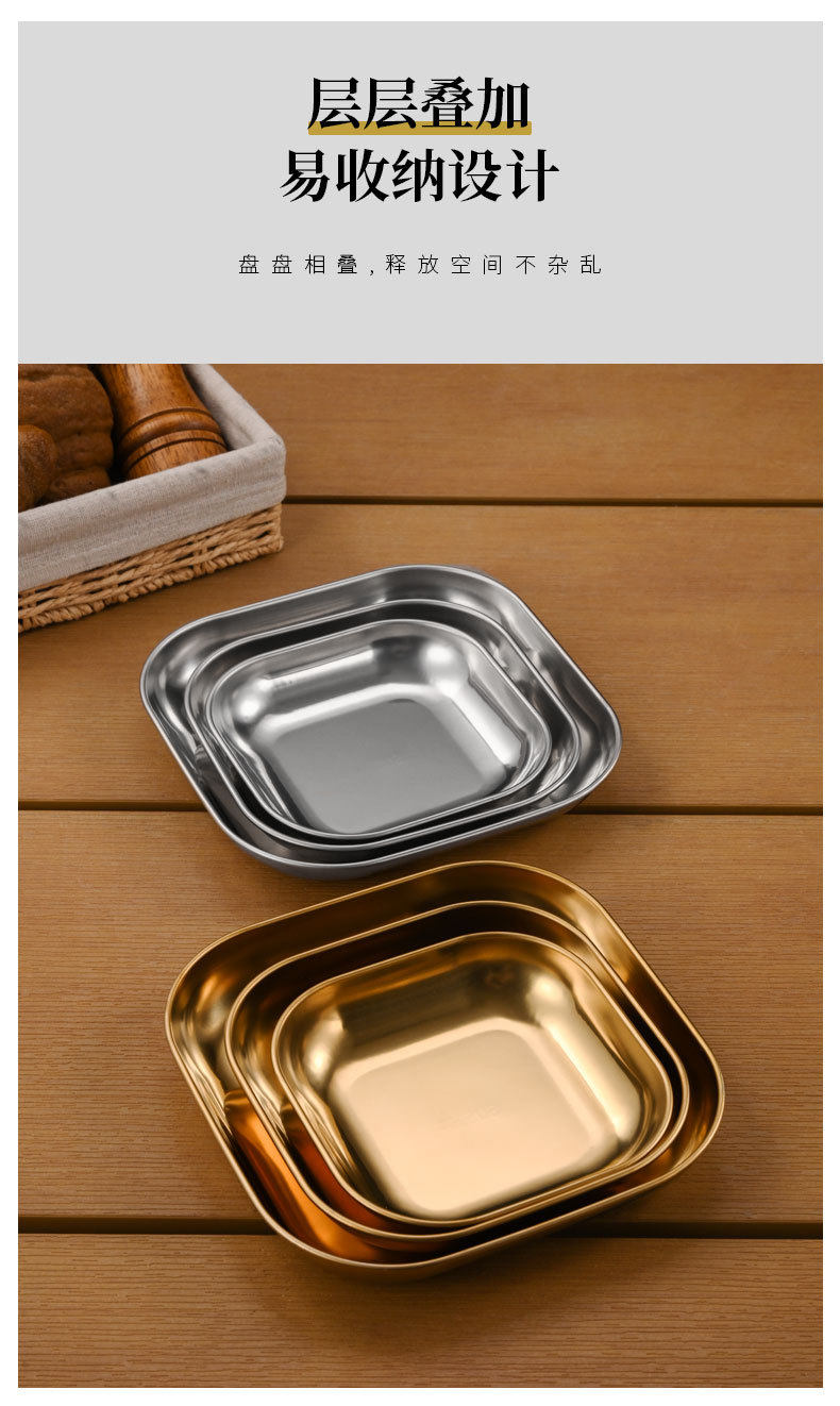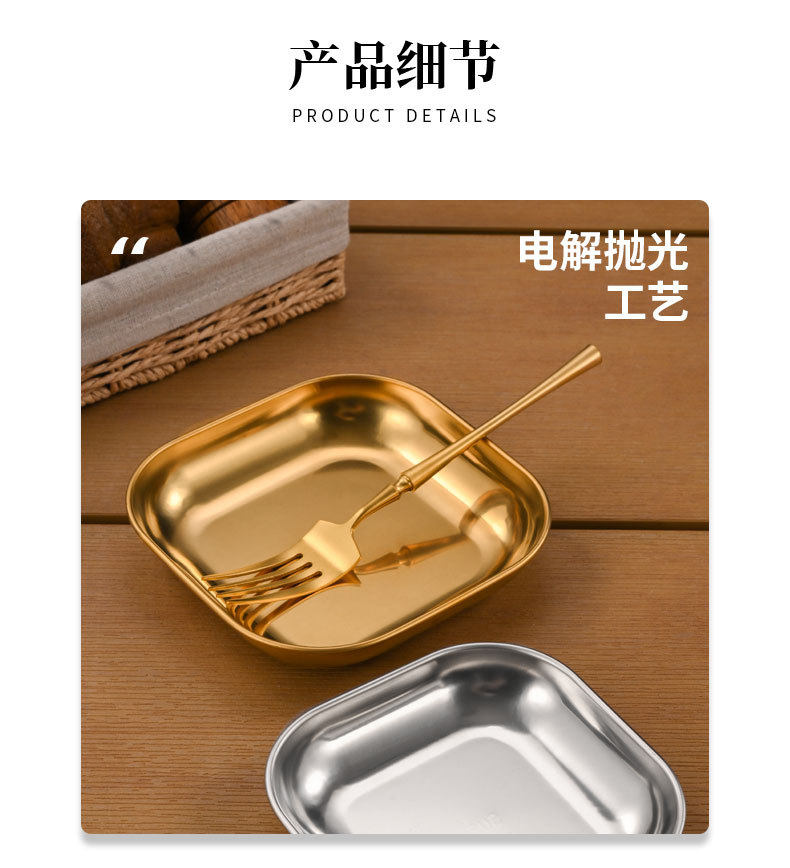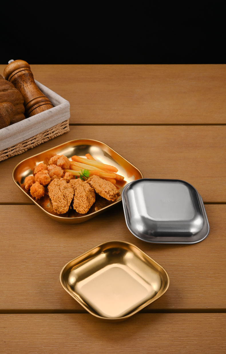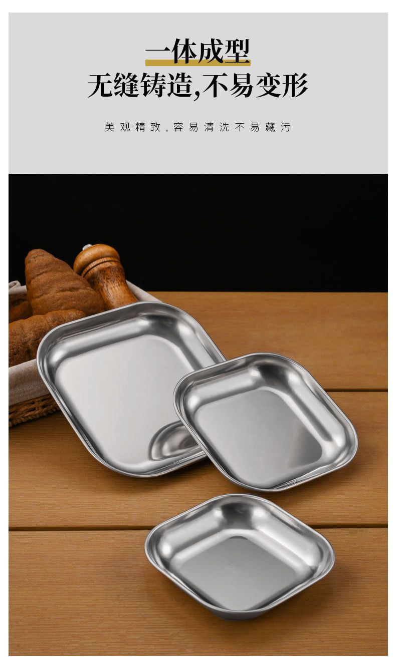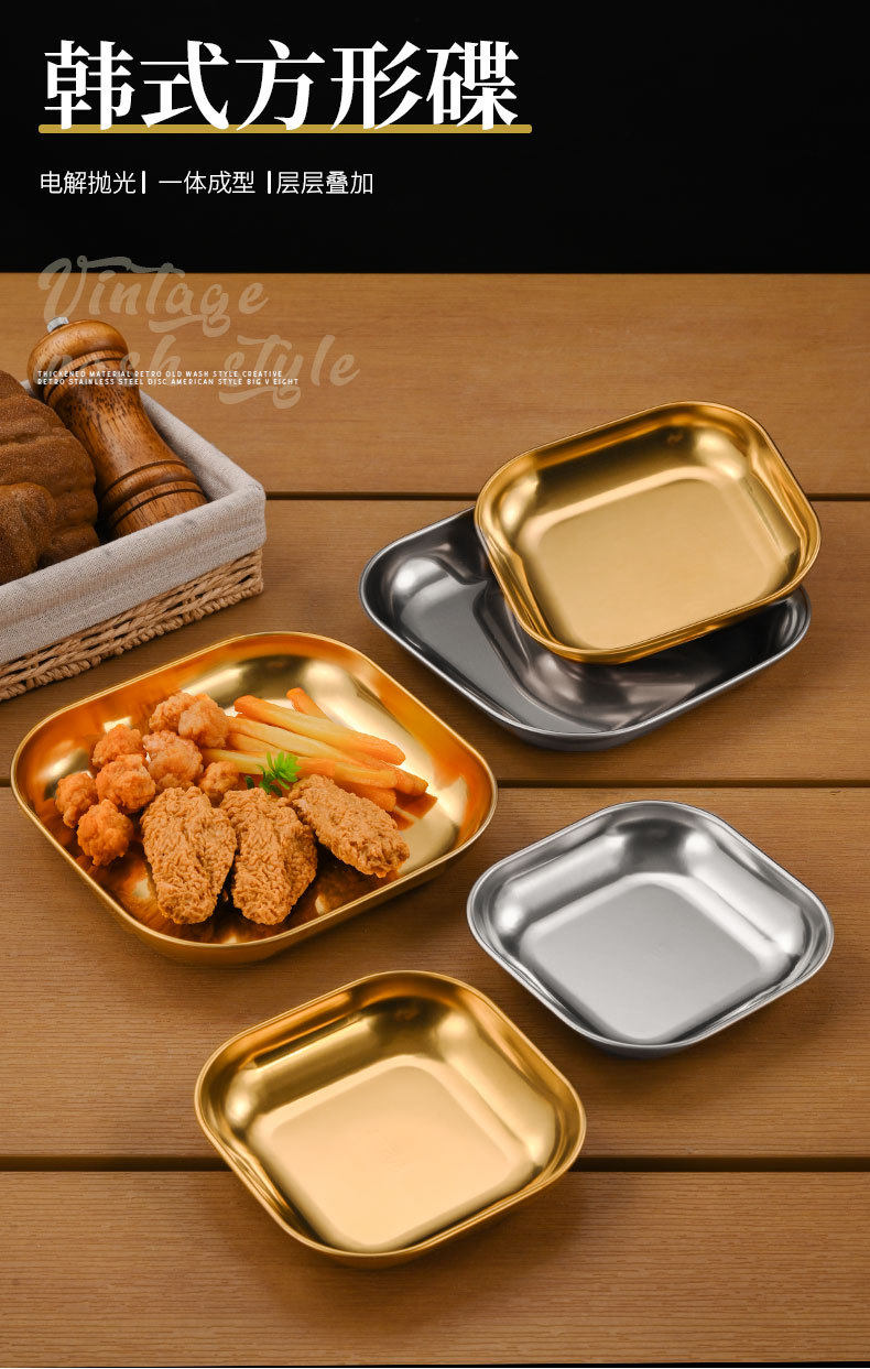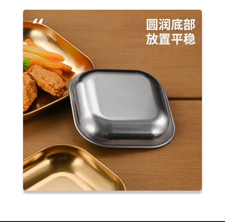 Korean 304 Stainless Steel Square Plate Commercial Fried Chicken and French Fries Plate Snack Plate Snack Plate Small Dish Plate