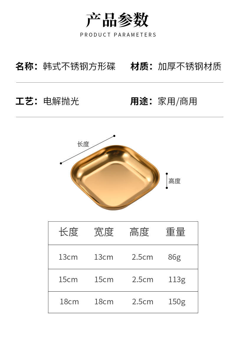 Color 13cm square dessert plate (silver),15cm square dessert plate (silver),18cm square dessert plate (silver),13cm square dessert plate (gold),15cm square dessert plate (gold),18cm square dessert plate (gold)