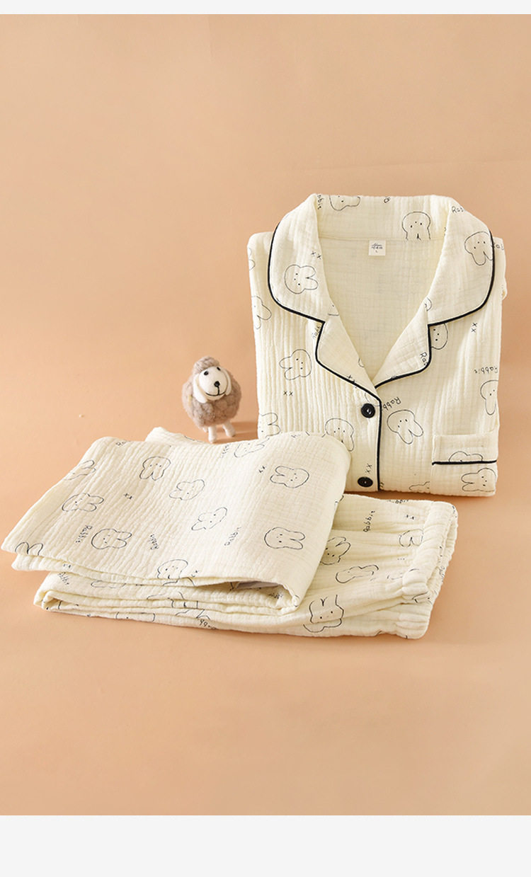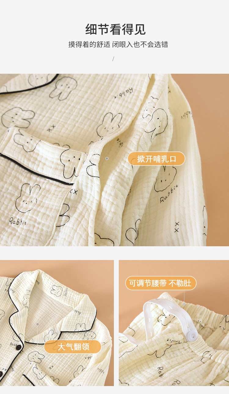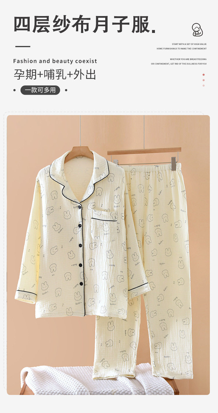 Class a Pure Cotton Four-Layer Gauze Confinement Clothing Autumn and Winter Postpartum Home Breastfeeding Cotton Sweat-Absorbent Maternity Pajamas