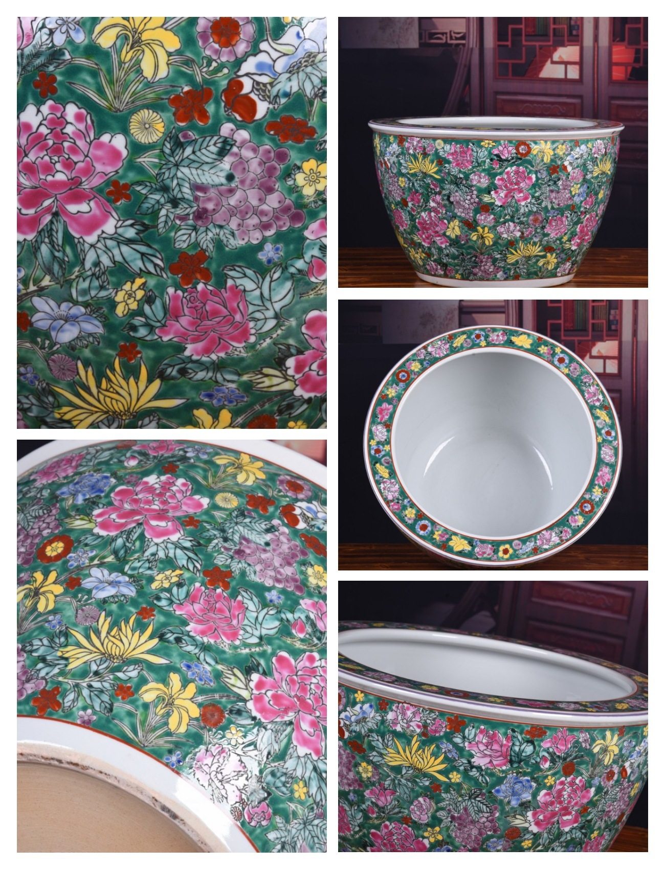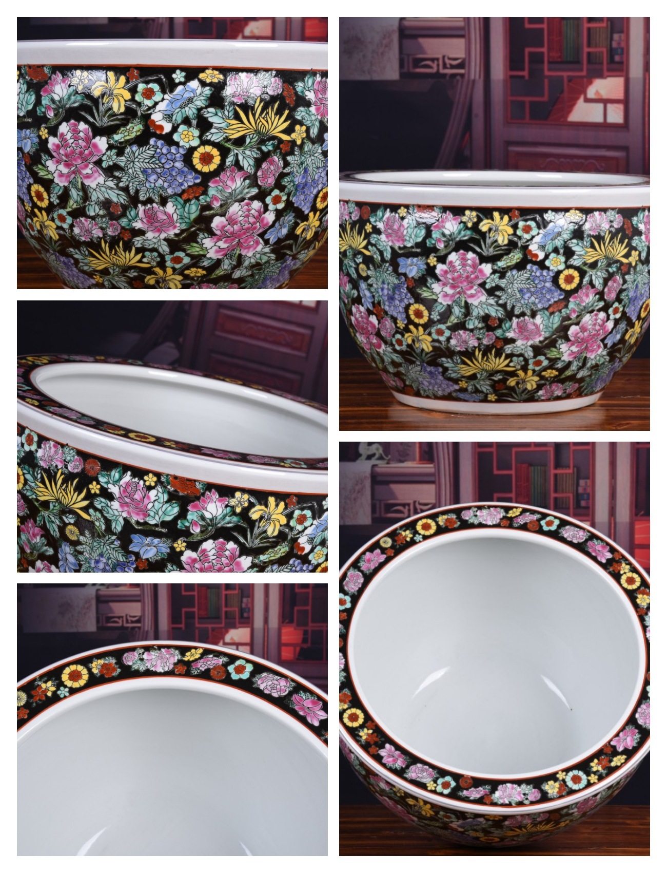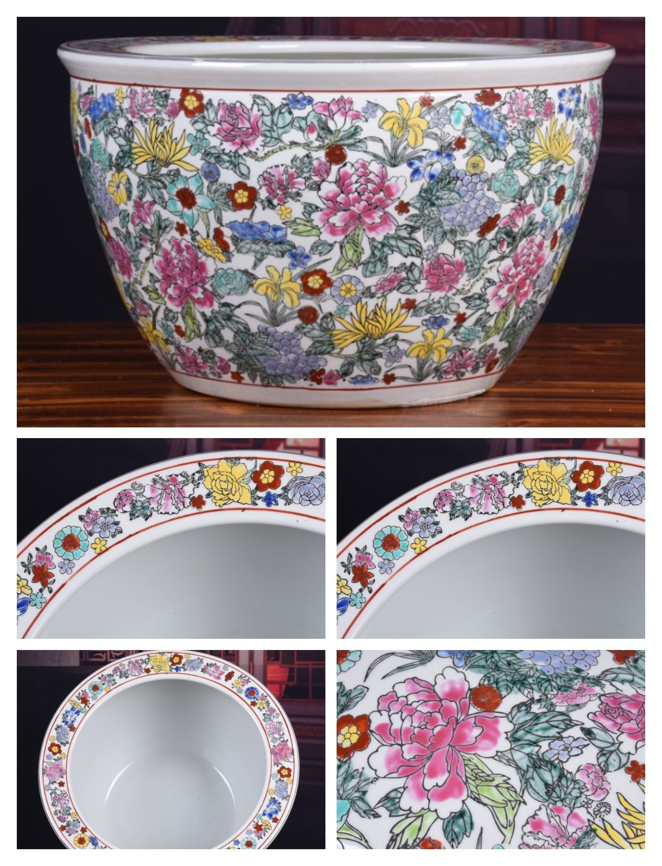 Jingdezhen Ceramic Fish Tank Hand-Painted Gold Pastel Flower Gold Fish Tank Flower Planting Home Decoration Crafts Ornaments