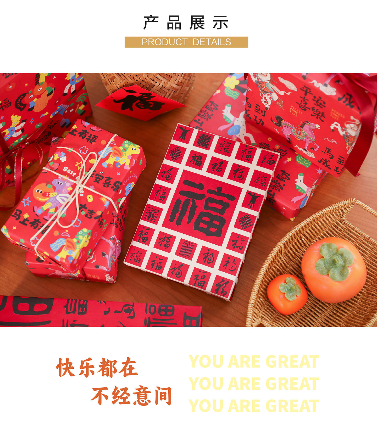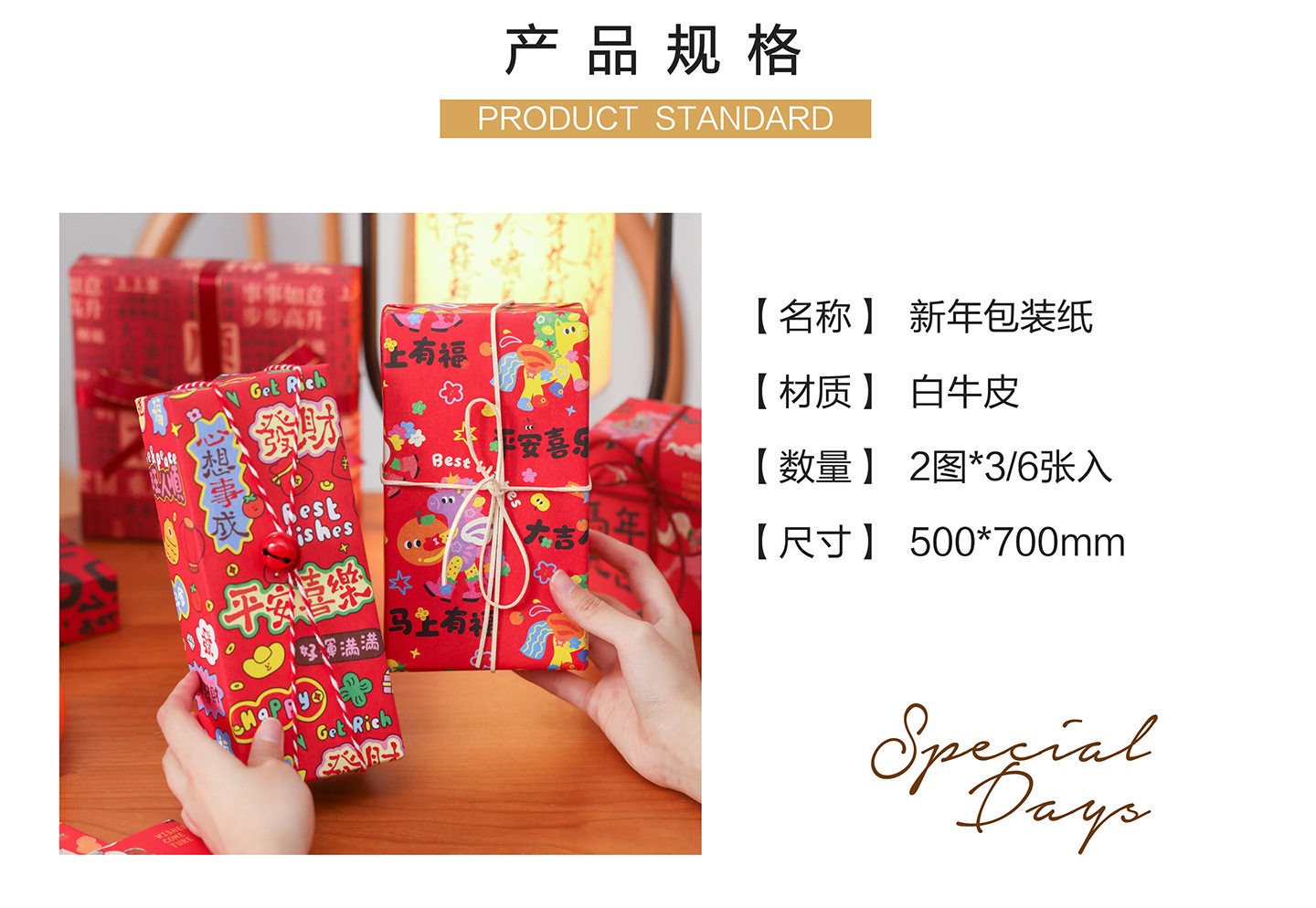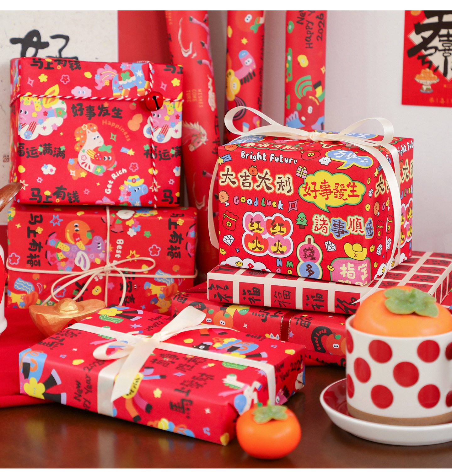 2026 New Year Gift Wrapping Paper Cartoon Pony Red Festive Large Thickeneded Kraft Paper Gift Wrapping Paper