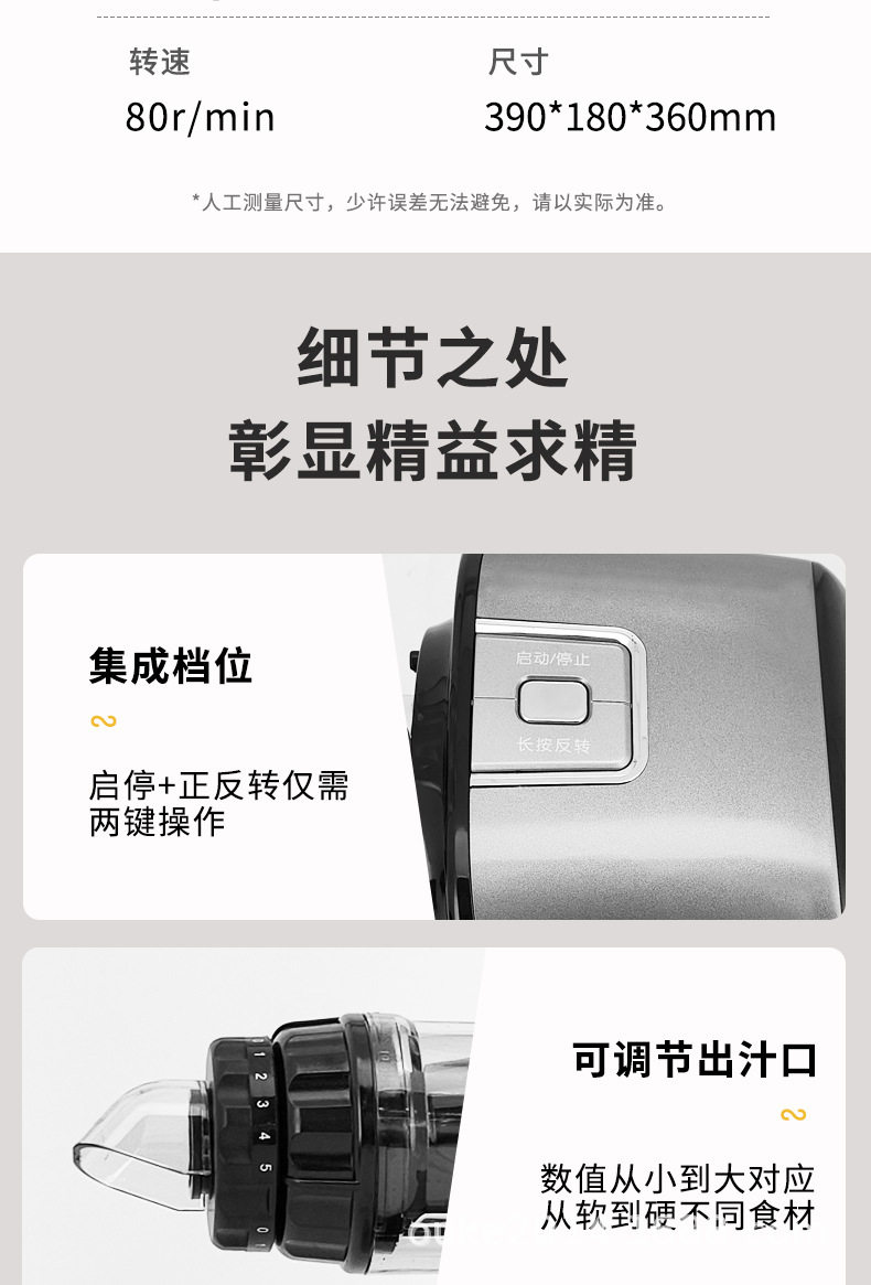 | Function | Separation of slag juice, high juice yield, easy cleaning, low noise |