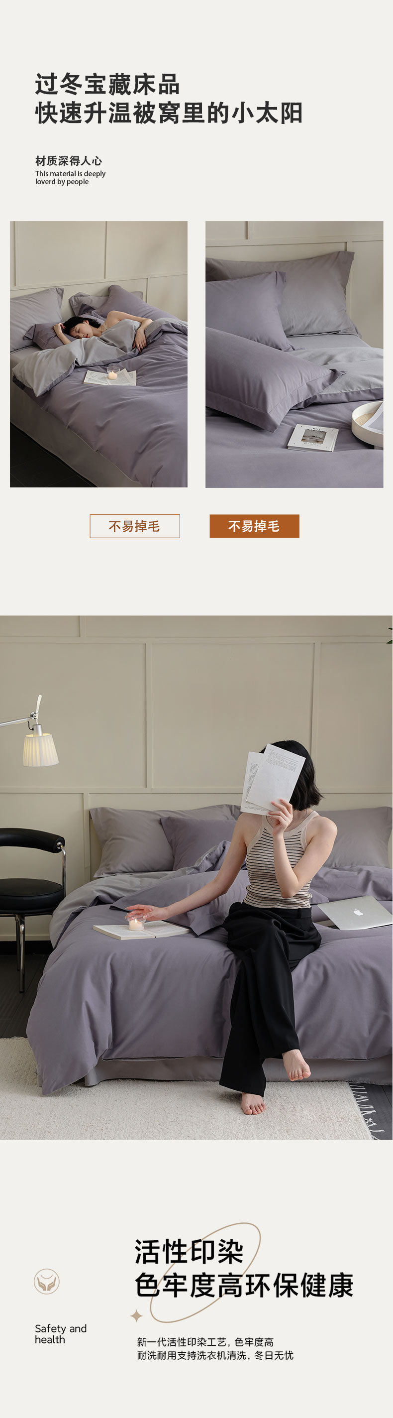 Casual Style 100S High Count Pure Cotton Brushed Four-Piece Set Pure Color Soft Cotton Quilt Cover 1.95m Bedding