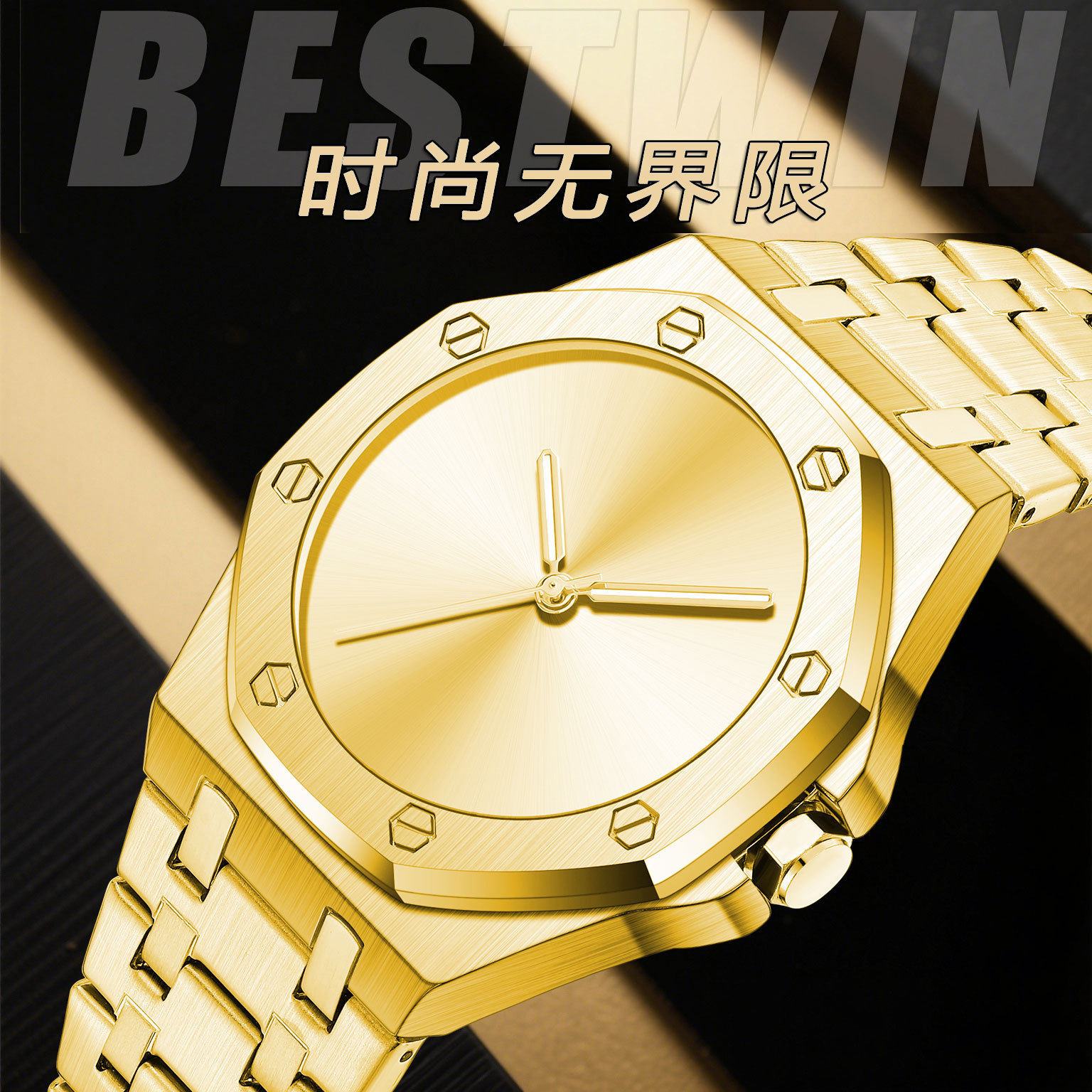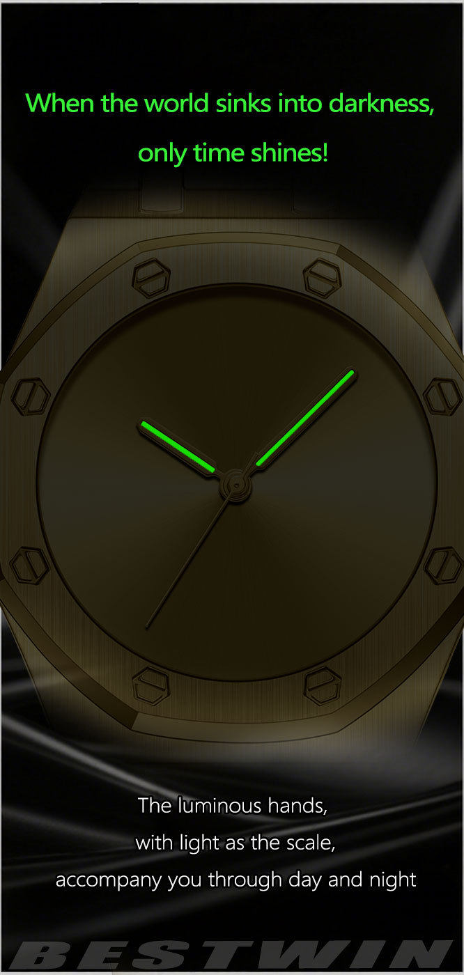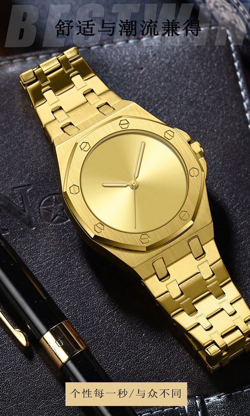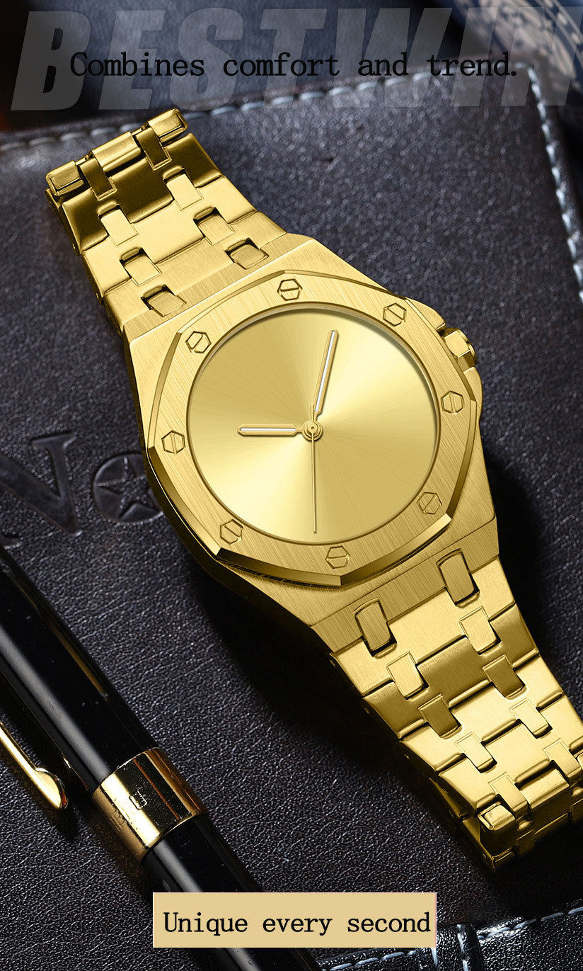 Minimalist Smooth Eight-Sided Waterproof Quartz Men's Watch Bestwin Luminous Foreign Trade Cross-Border Tiktok