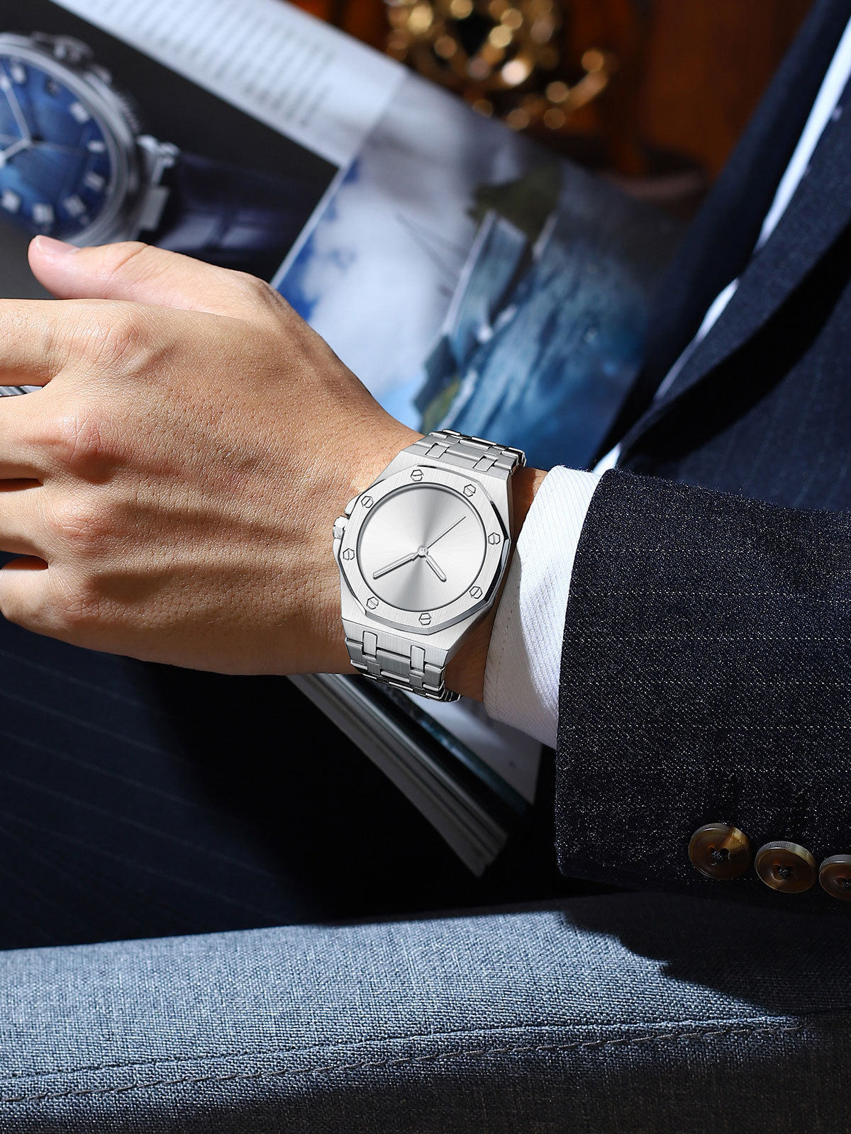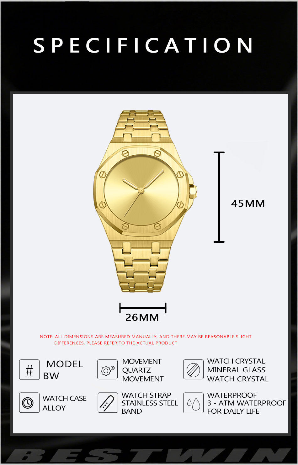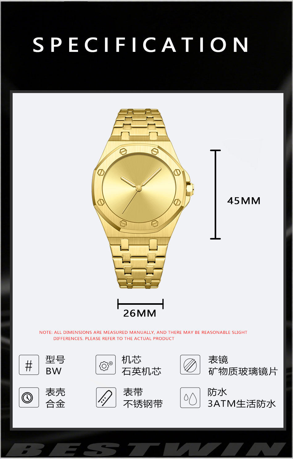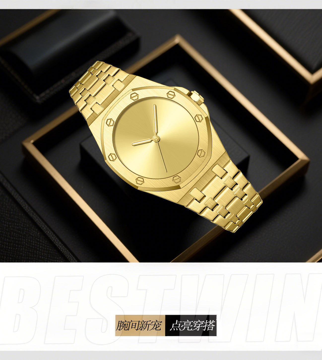 Minimalist Smooth Eight-Sided Waterproof Quartz Men's Watch Bestwin Luminous Foreign Trade Cross-Border Tiktok