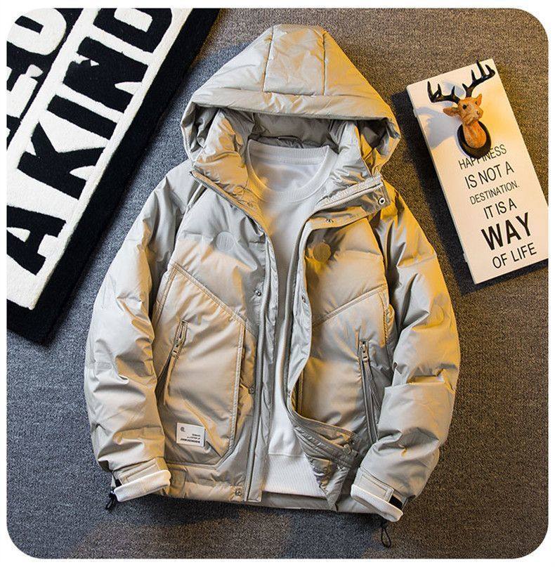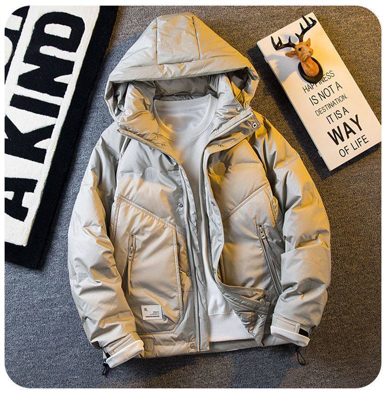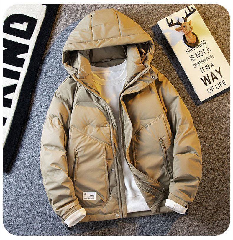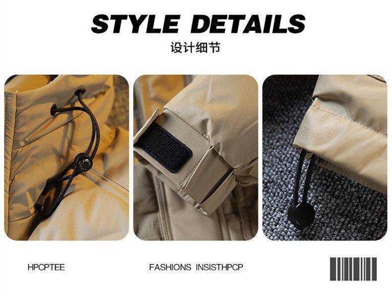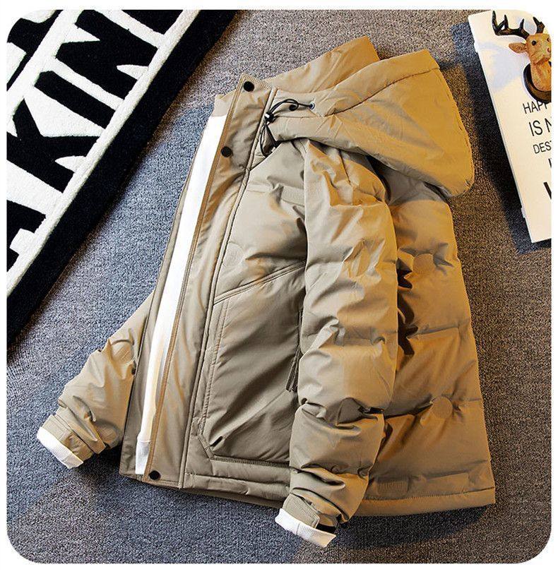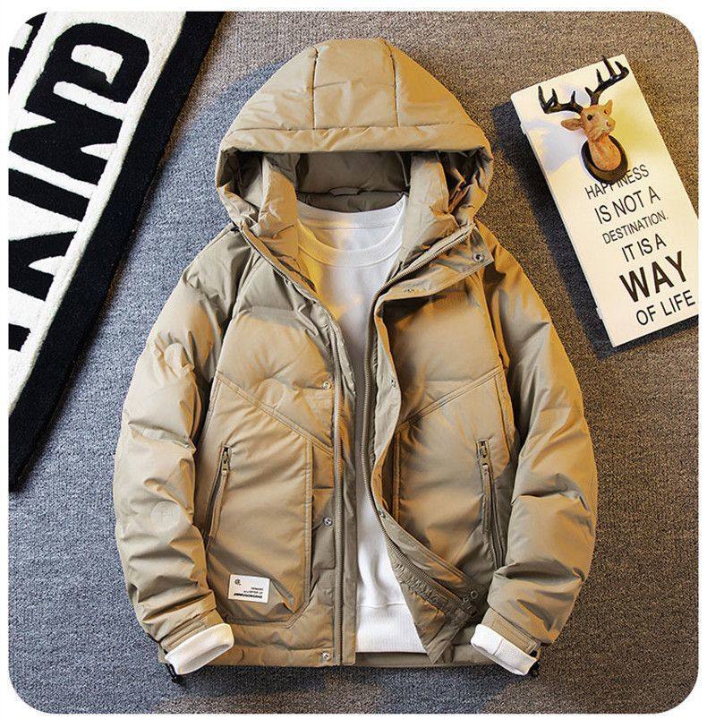 Down Jacket Men's Autumn and Winter 2024 New Light Clothing Pure Color Fleece-Lined Thickeneded Work Jacket
