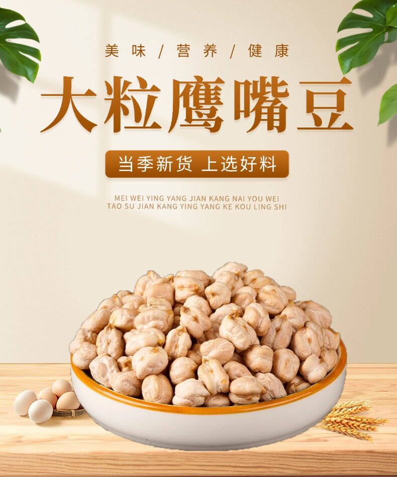 | Packaging specifications | Xinjiang cooked chickpeas [large particles about 1.5cm] 500g*1 bag net weight,Xinjiang cooked chickpeas [large particles about 1.5cm] 500g*2 bags net weight,Xinjiang cooked chickpeas [large particles about 1.5cm] 500g*3 bags net weight,Xinjiang cooked chickpeas [large particles about 1.5cm] 500g*5 bags net weight,Xinjiang cooked chickpeas [large particles about 1.5cm] 250g*1 bag net weight,Xinjiang cooked chickpeas [large particles about 1.5cm] 250g*2 bags net weight,Xinjiang cooked chickpeas [large particles about 1.5cm] 250g*3 bags net weight,Xinjiang cooked chickpeas [large particles about 1.5cm] 250g*5 bags net weight,Xinjiang cooked chickpeas [large particles about 0.8cm] 10g*5 bags net weight |