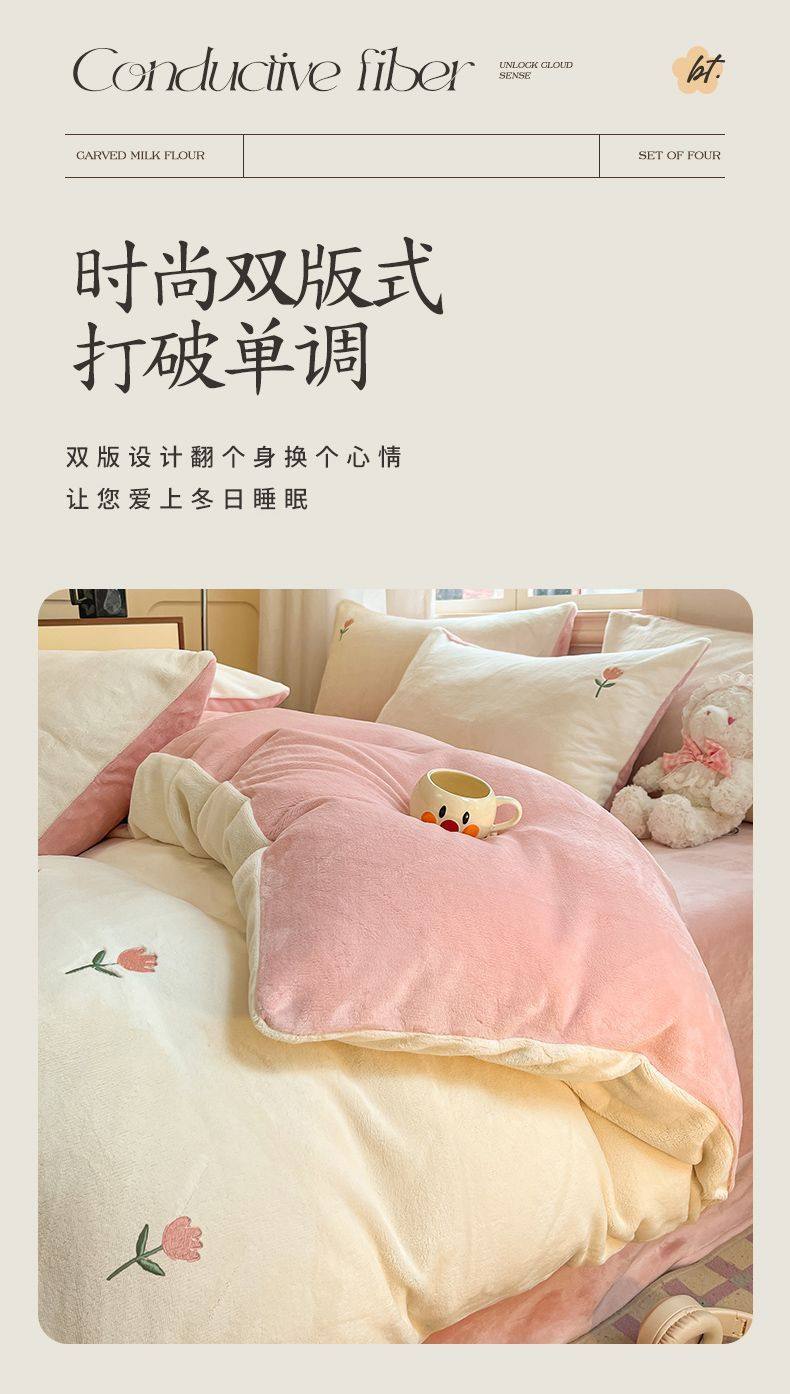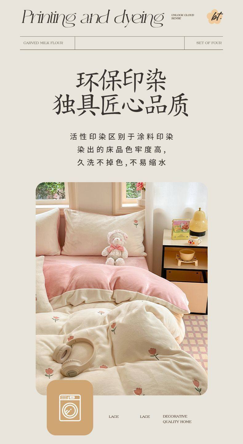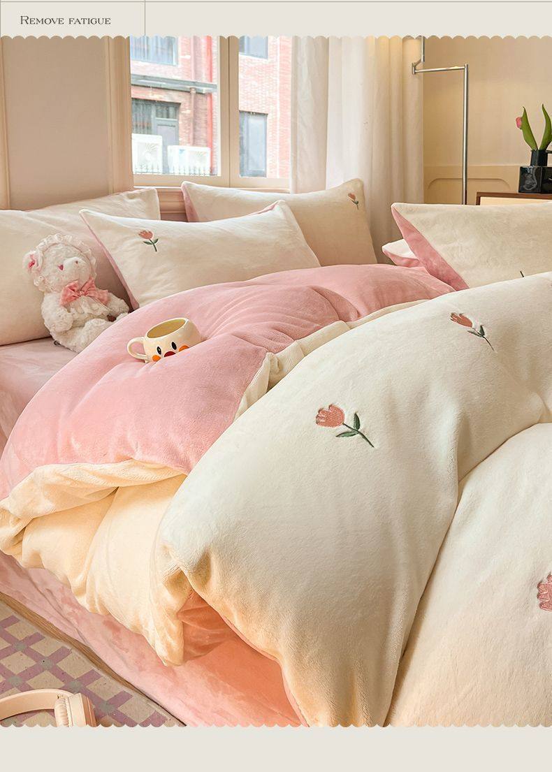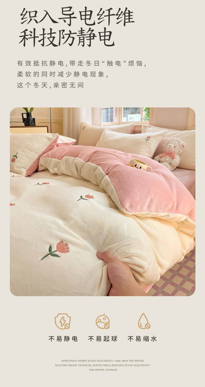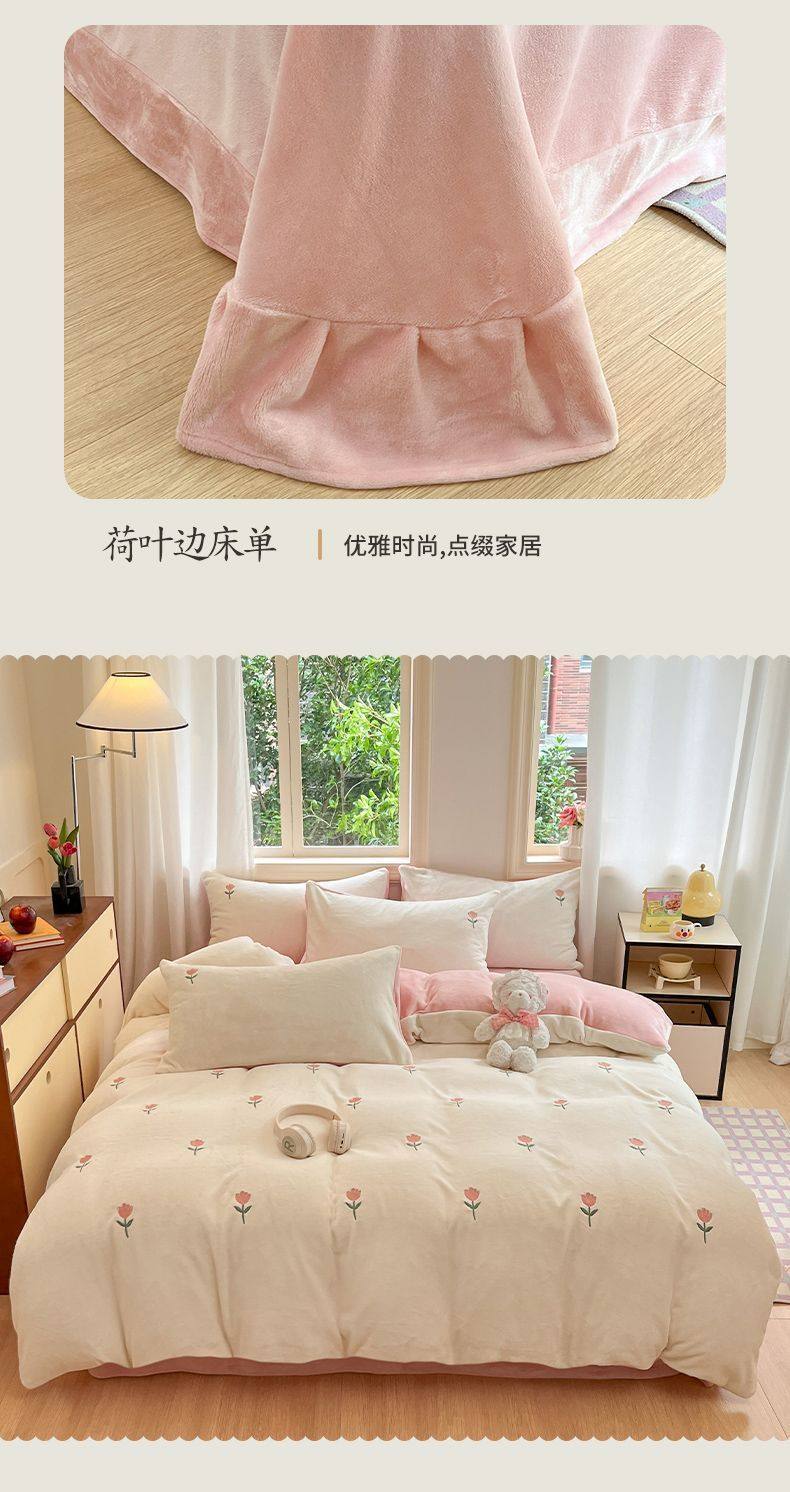 2025 New Four-Piece Bed Sheet Set, Fitted Sheet, Duvet Cover, Fleece-Lined Bedding Three-Piece Set, Double Milk Velvet Warm