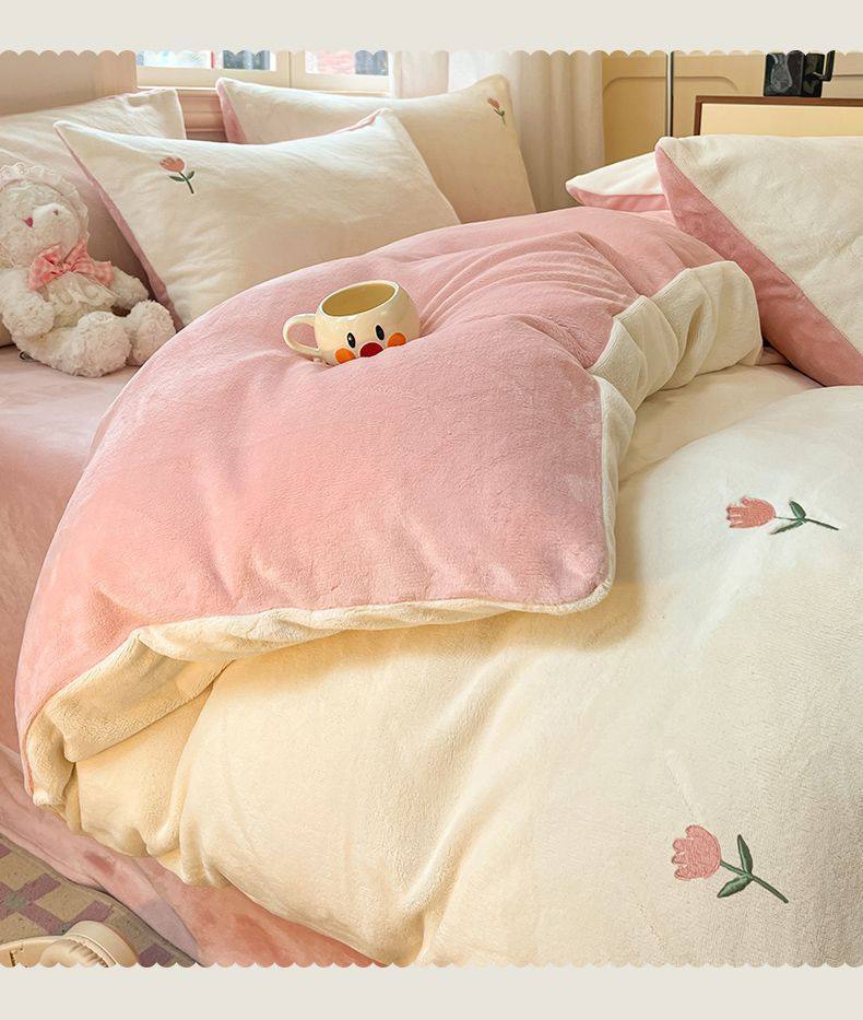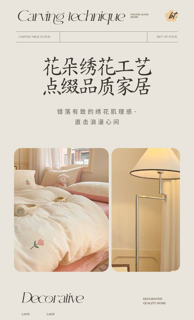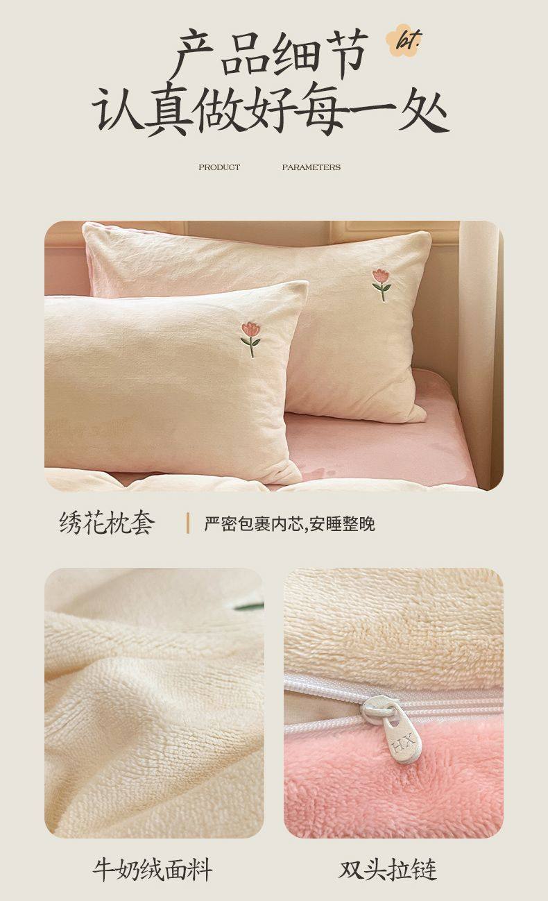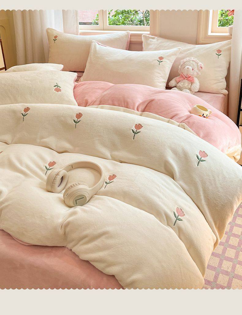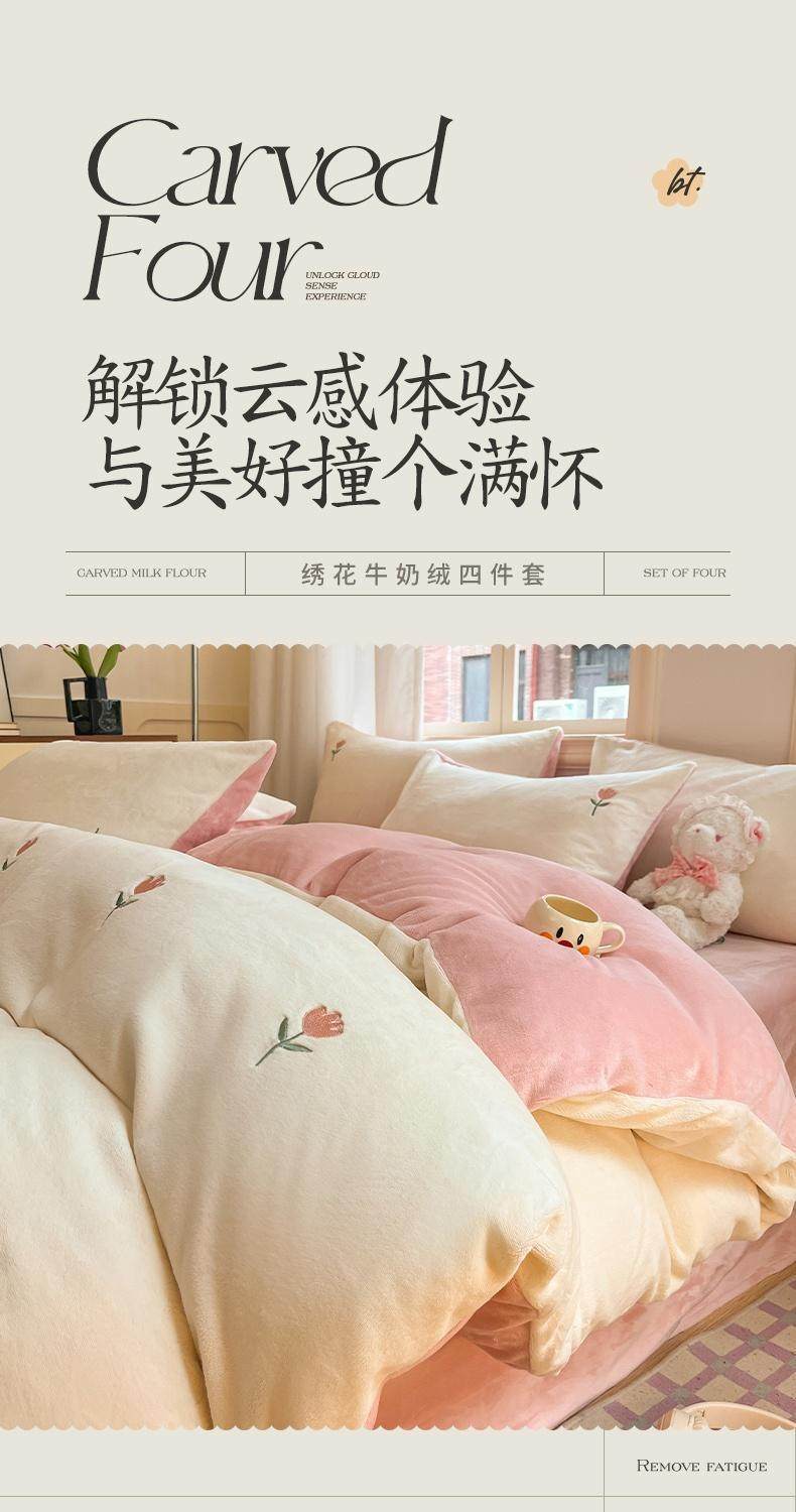 2025 New Four-Piece Bed Sheet Set, Fitted Sheet, Duvet Cover, Fleece-Lined Bedding Three-Piece Set, Double Milk Velvet Warm