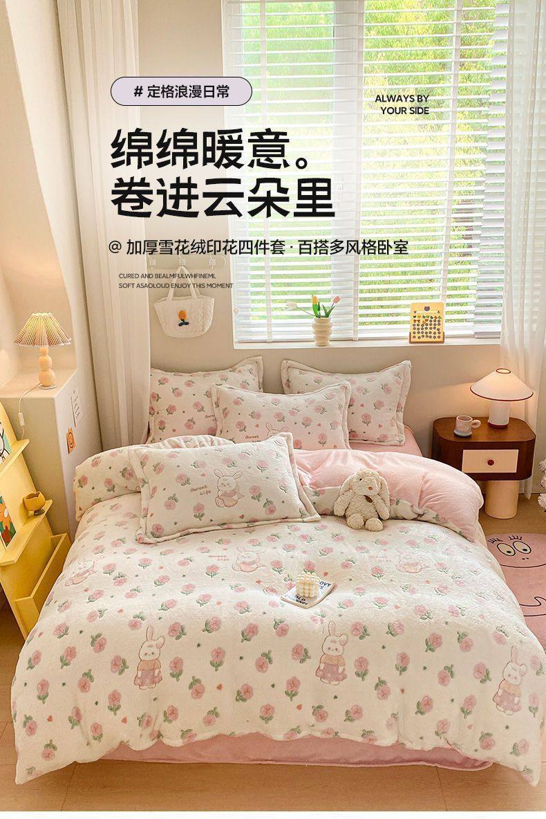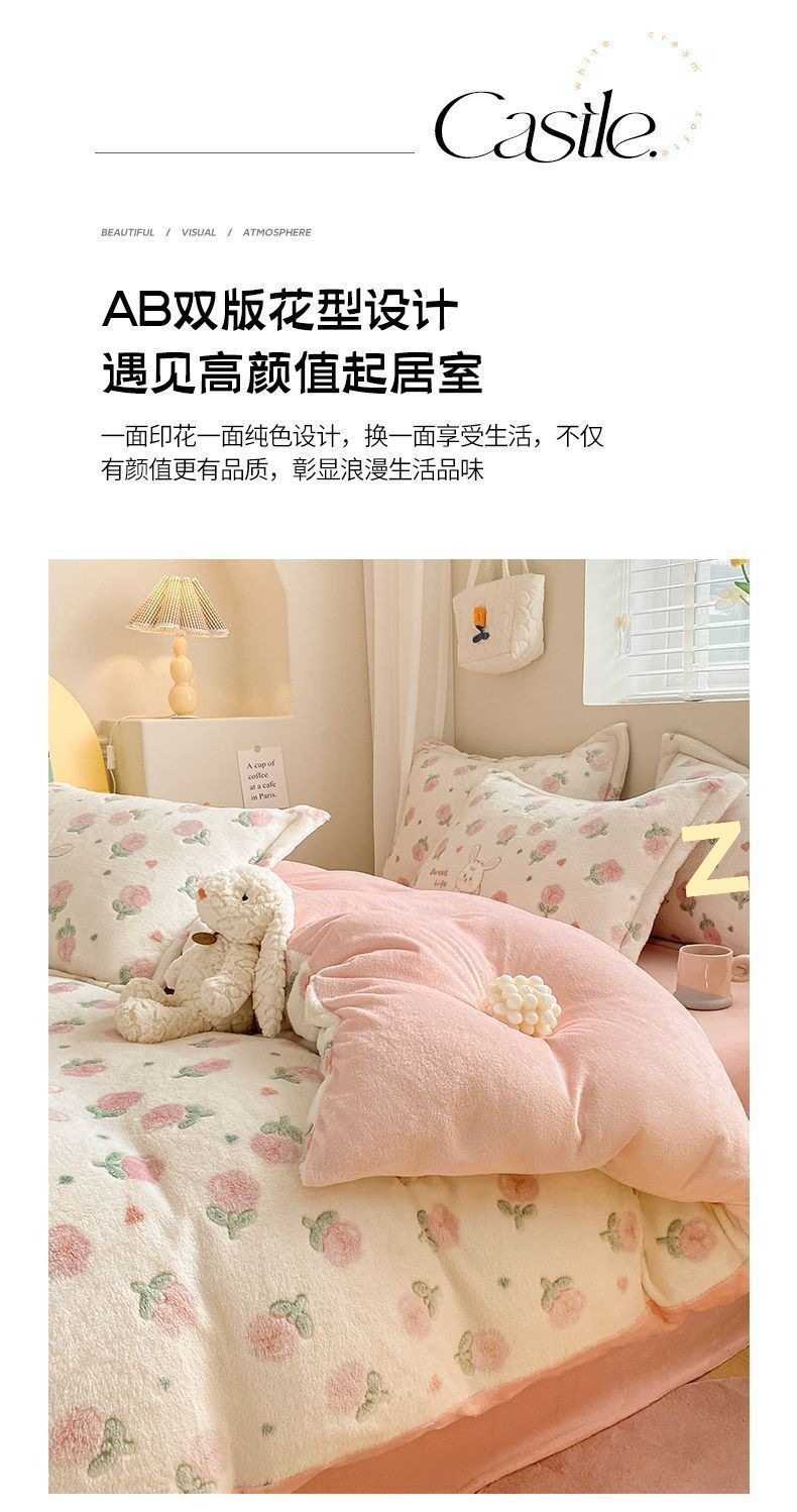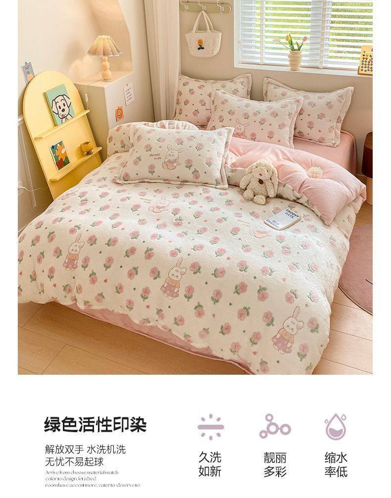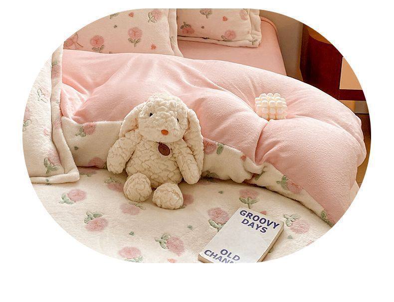 Milk Velvet Four-Piece Set Thickeneded Autumn and Winter Coral Velvet Bed Bed Sheetss Flannel Double-Sided Fleece-Lined Quilt Cover Three-Piece Set