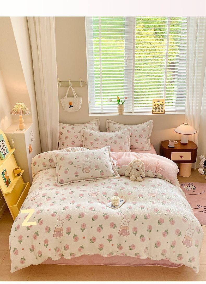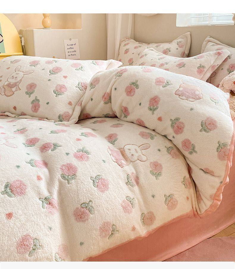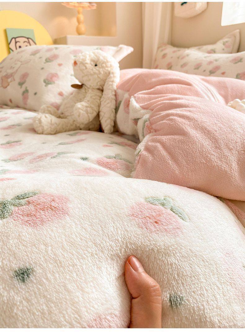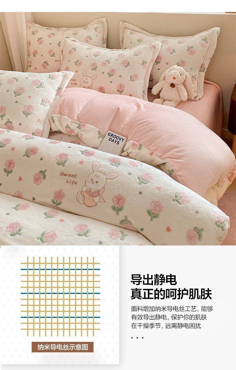 Milk Velvet Four-Piece Set Thickeneded Autumn and Winter Coral Velvet Bed Bed Sheetss Flannel Double-Sided Fleece-Lined Quilt Cover Three-Piece Set