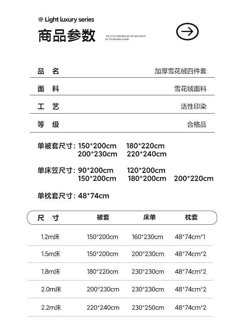 | Size specifications | 150x200cm-[thickened single piece quilt cover],180x220cm-[thickened single piece quilt cover],200x230cm-[thickened single-piece quilt cover],Quilt cover-150x200cm+1 pair of pillowcases of the same style,Quilt cover-180x220cm+1 pair of pillowcases of the same style,0.9-1.2 three-piece set--suitable for 1.5x 2m quilt core,1.5m four-piece set--suitable for 1.5x 2m quilt core,Quilt cover-200x230cm+1 pair of pillowcases of the same style,1.8m four-piece set--suitable for 1.8x 2.2m quilt core,2.0m four-piece set--suitable for 2.0x 2.3m quilt core |