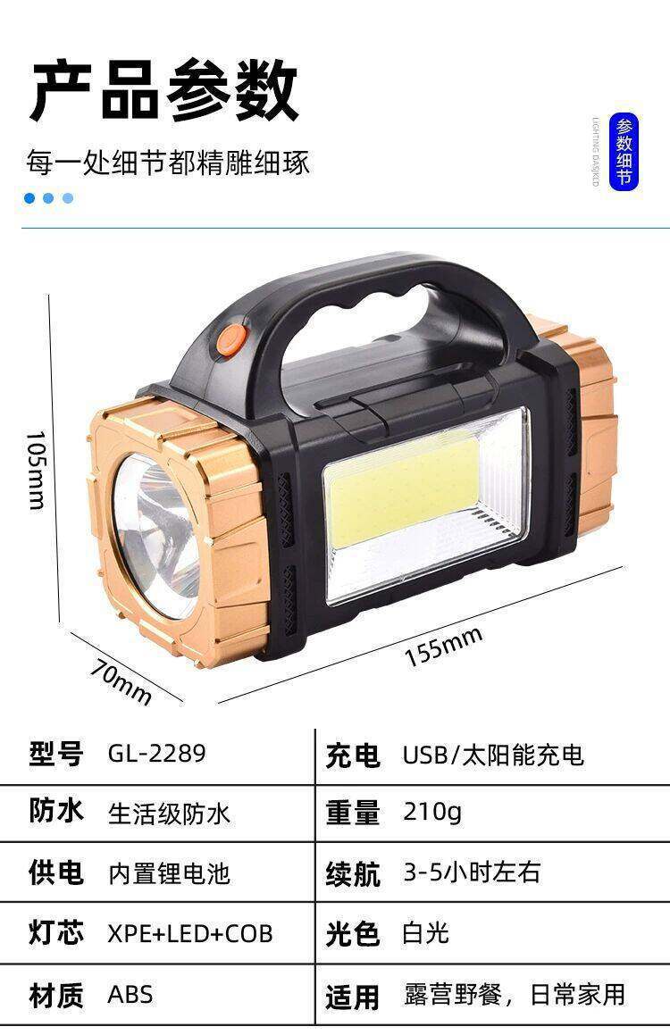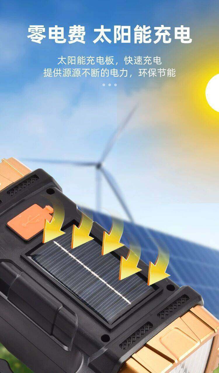 New Multifunctional Portable Lamp, Bright Flashlight, Led Lighting, Outdoor Solar Charging Portable Searchlight