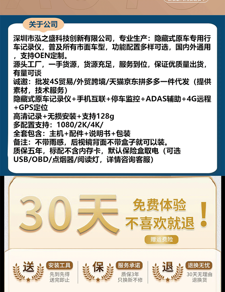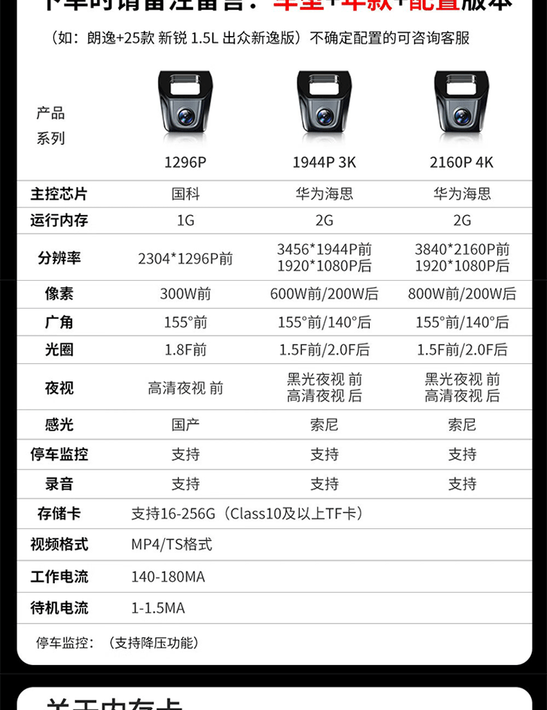 | Color classification | Single recording + 1080p hd +black light night vision,Single recording + 2k ultra-clear + voice control,Single recording + 4k ultra hd + sony lens,Dual recording before and after [4k+1k],4g remote monitoring pre-recorded hd + acc line |
