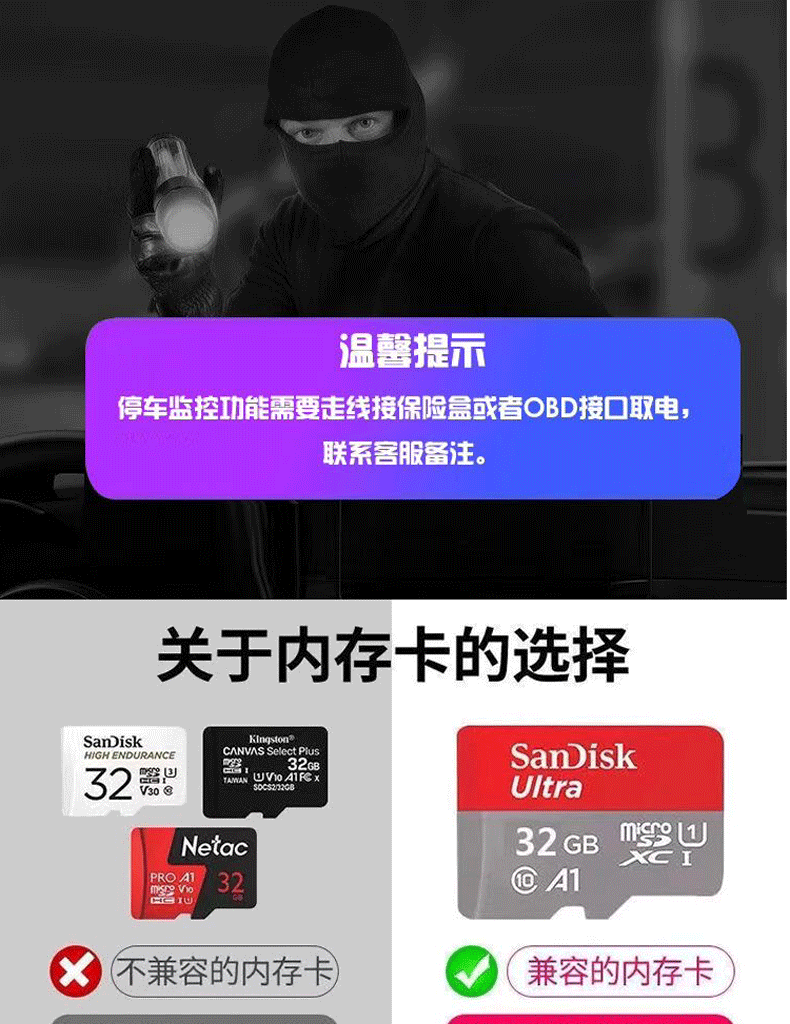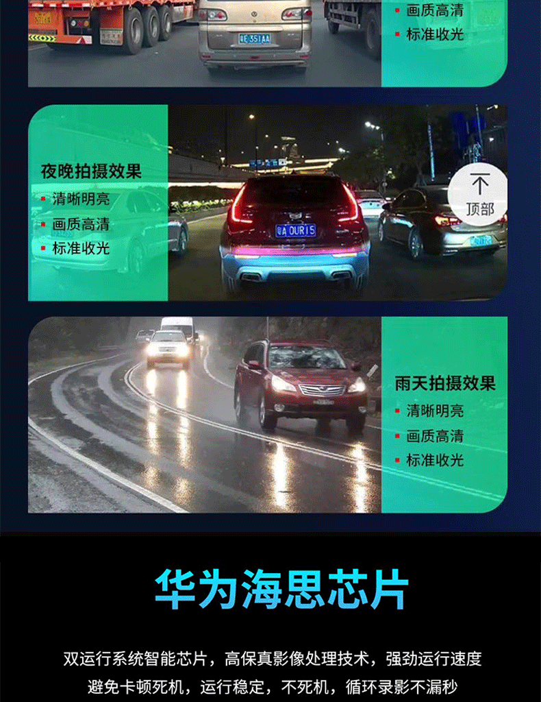 | Function | Parking monitoring,Collision sensing,Enhanced night vision,Before and after recording |