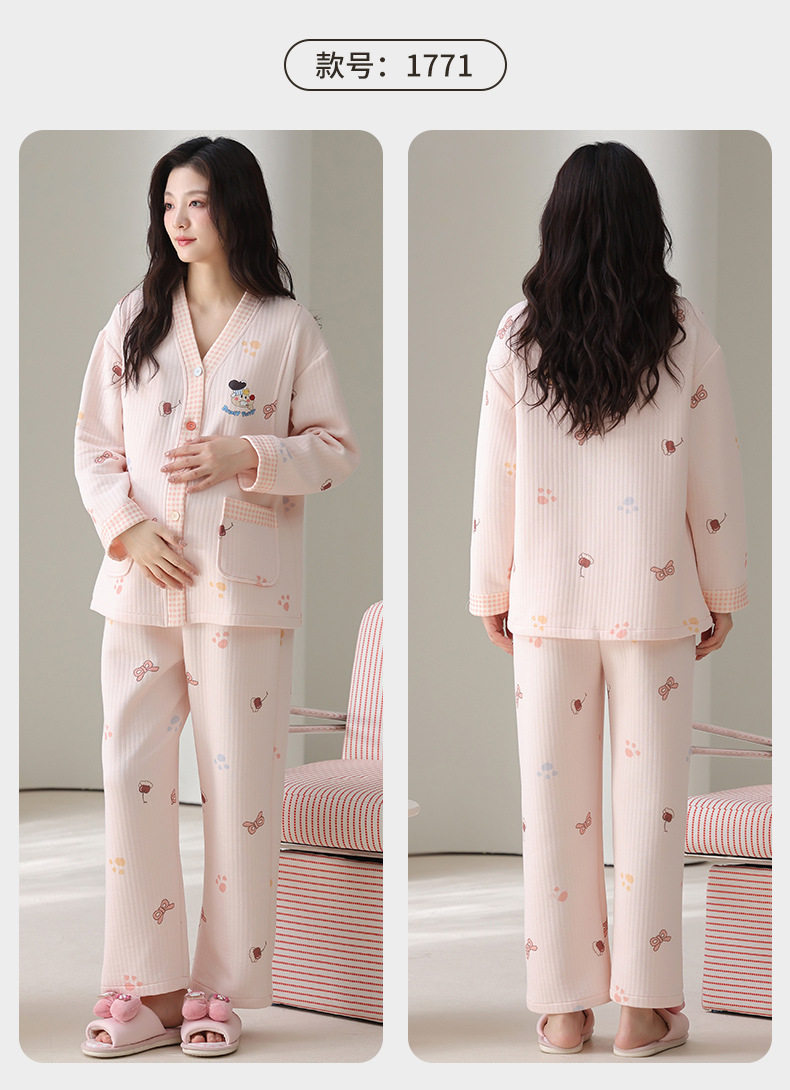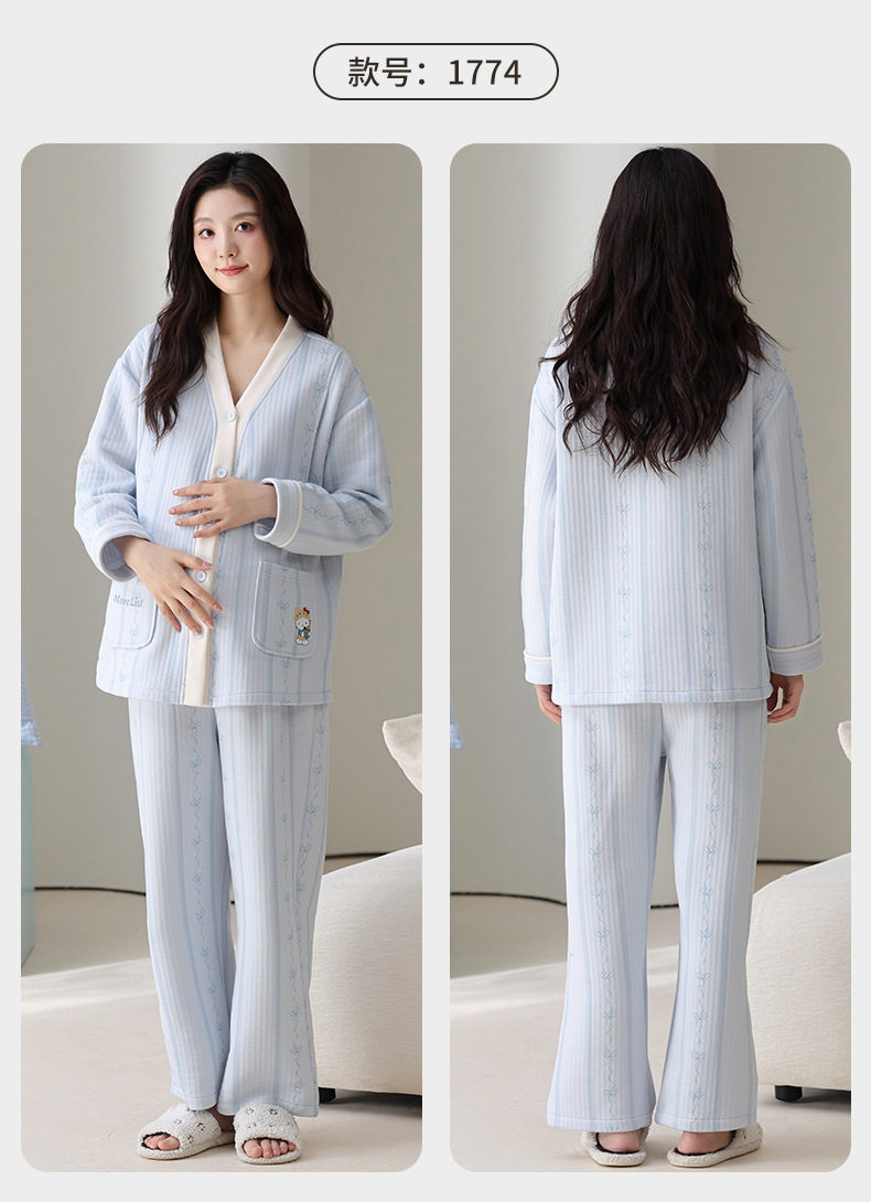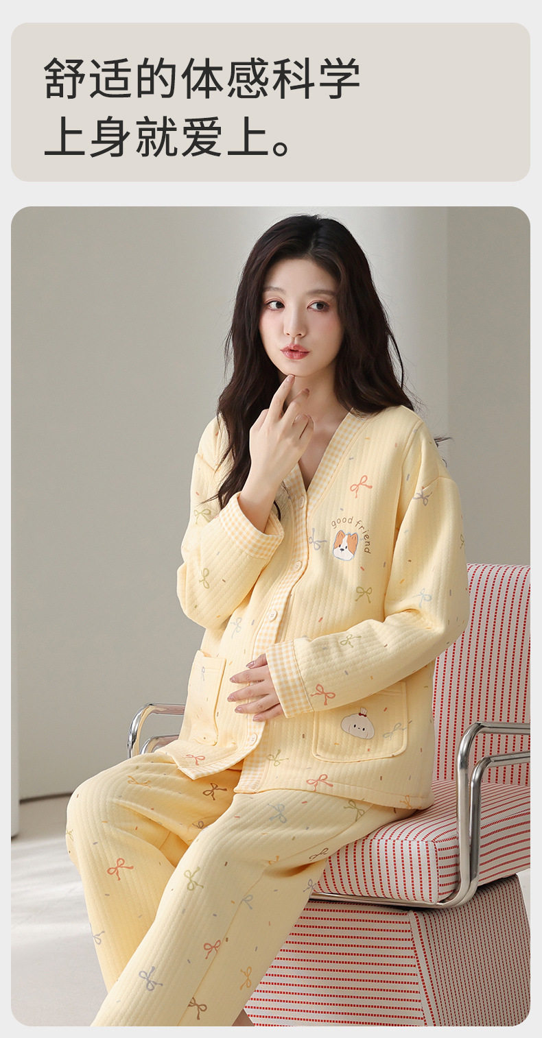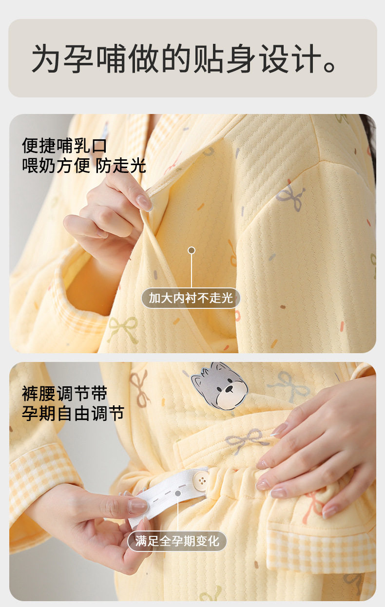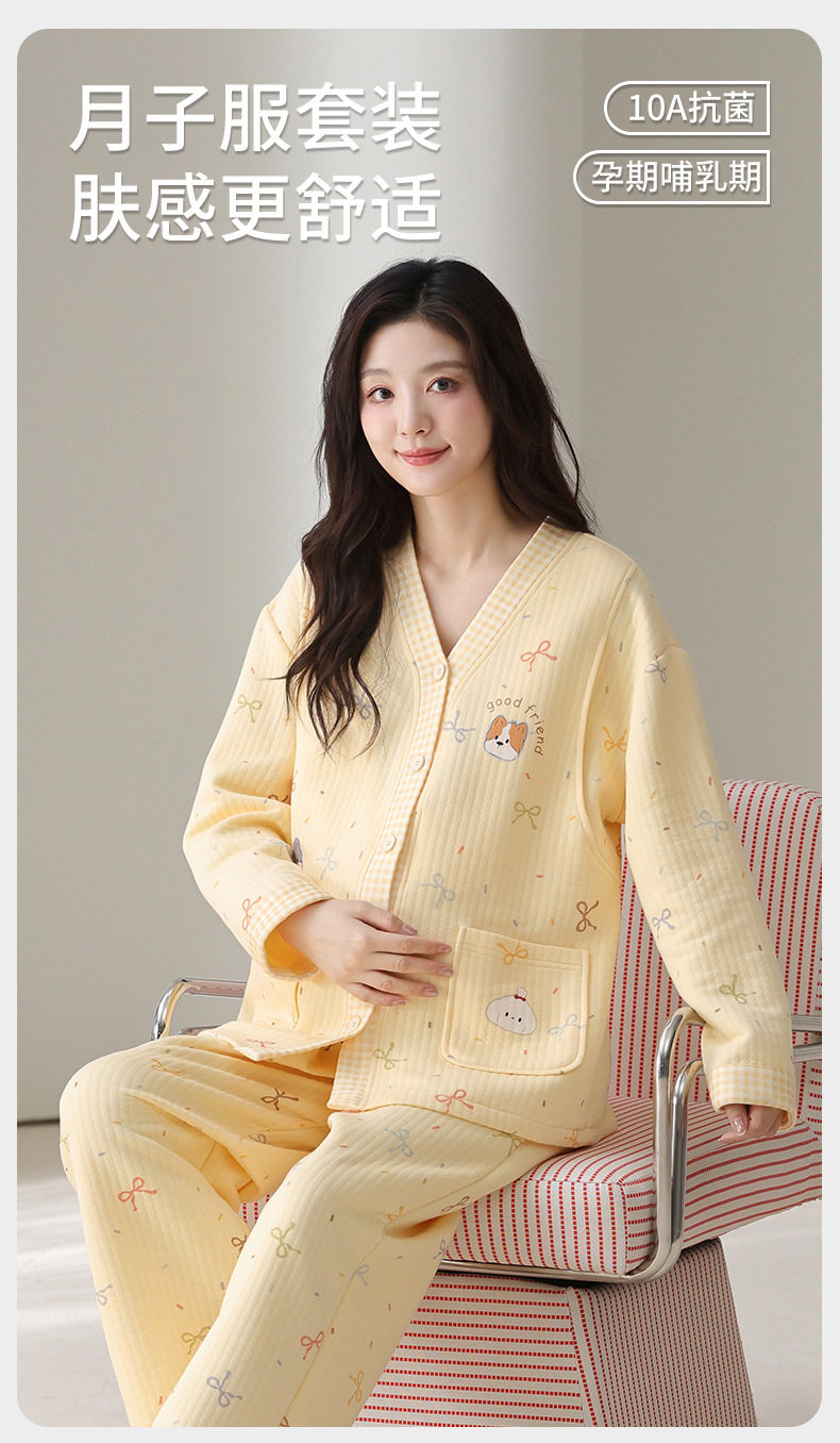 Pure Cotton Maternity Pajamas, Winter Outer Wear, Air Cotton Nursing Pajamas, Home Clothes, Confinement Clothes, Winter Maternity Breastfeeding Two-Piece Set