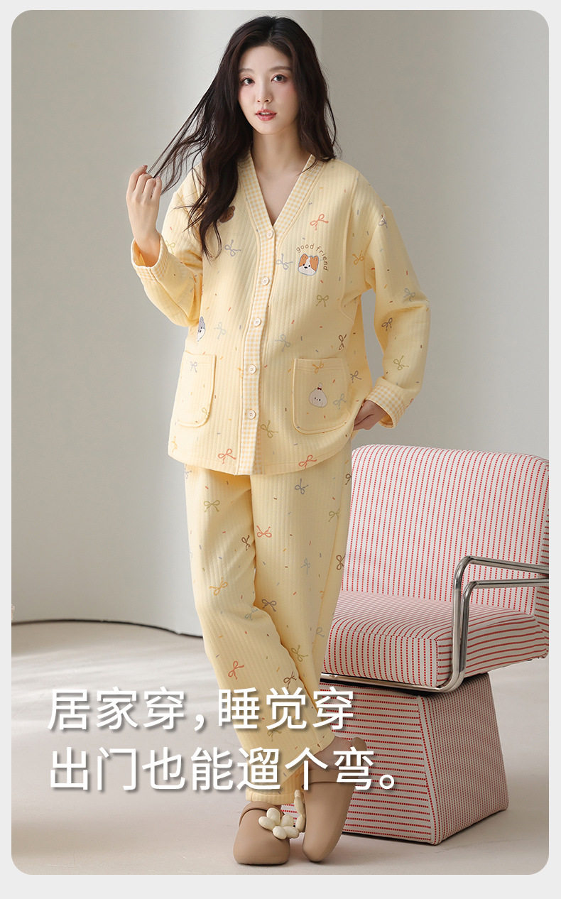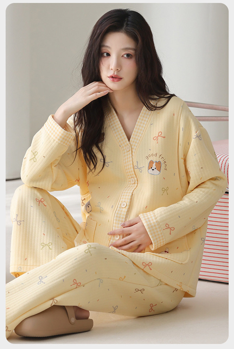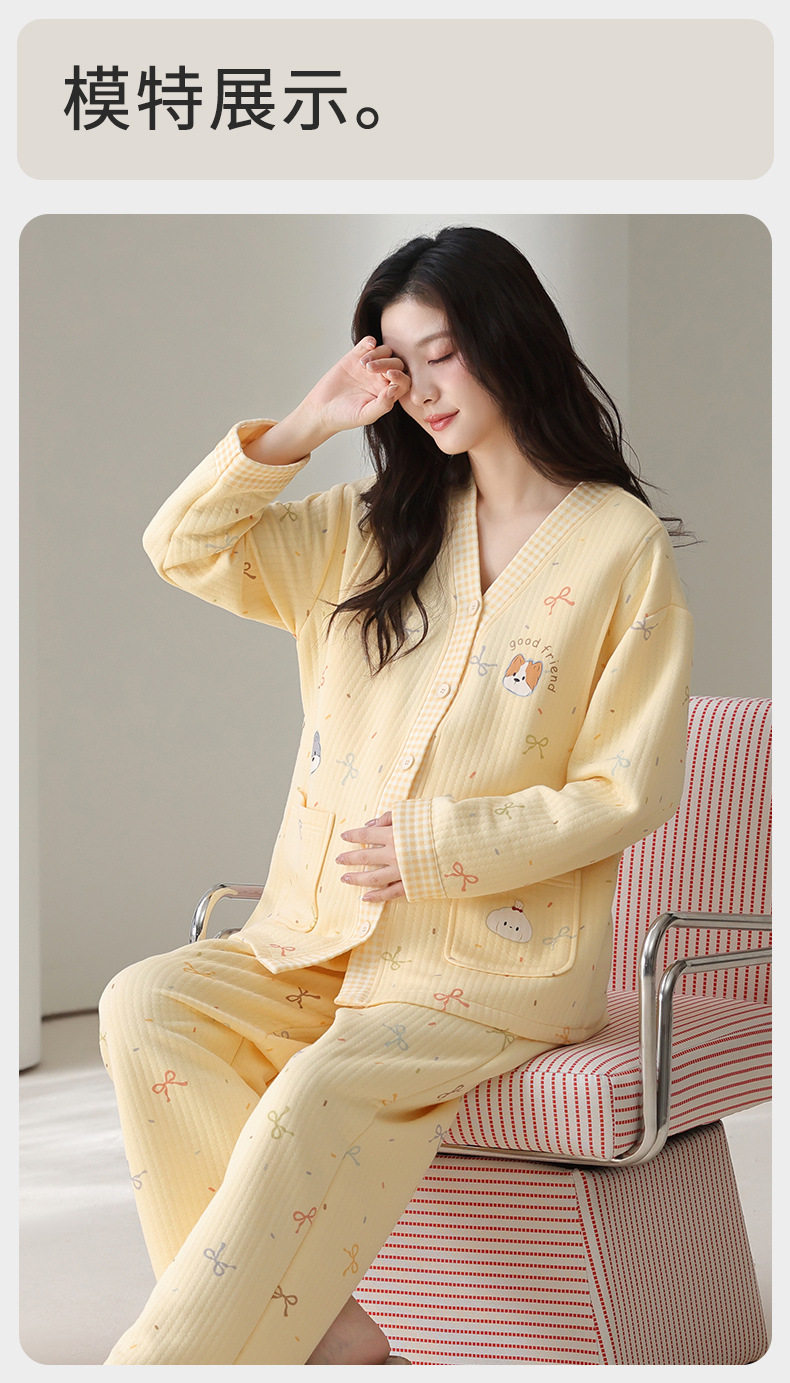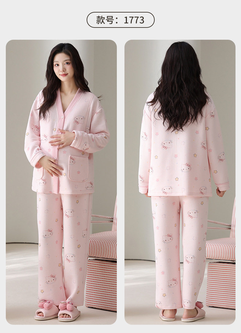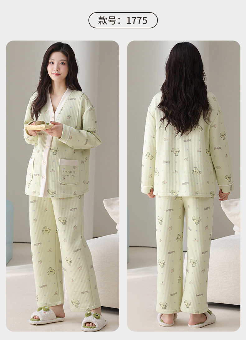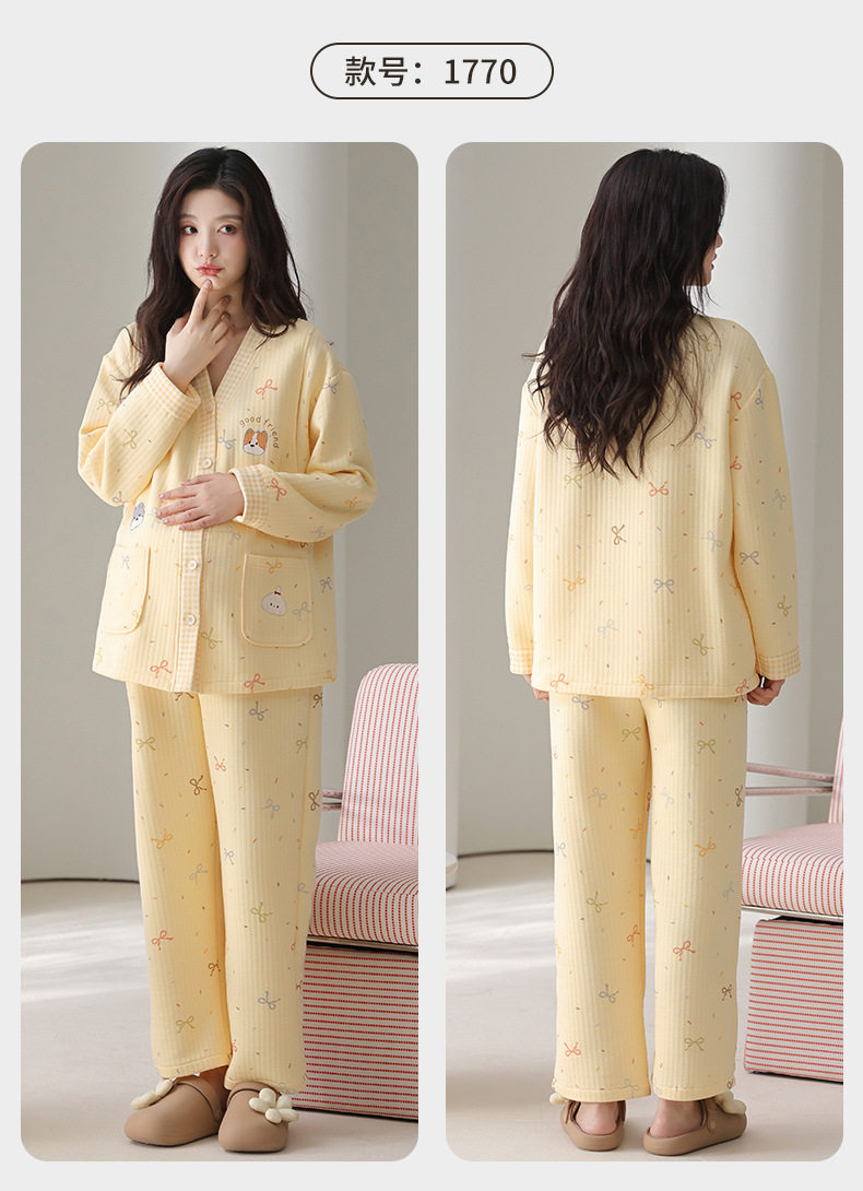 Pure Cotton Maternity Pajamas, Winter Outer Wear, Air Cotton Nursing Pajamas, Home Clothes, Confinement Clothes, Winter Maternity Breastfeeding Two-Piece Set