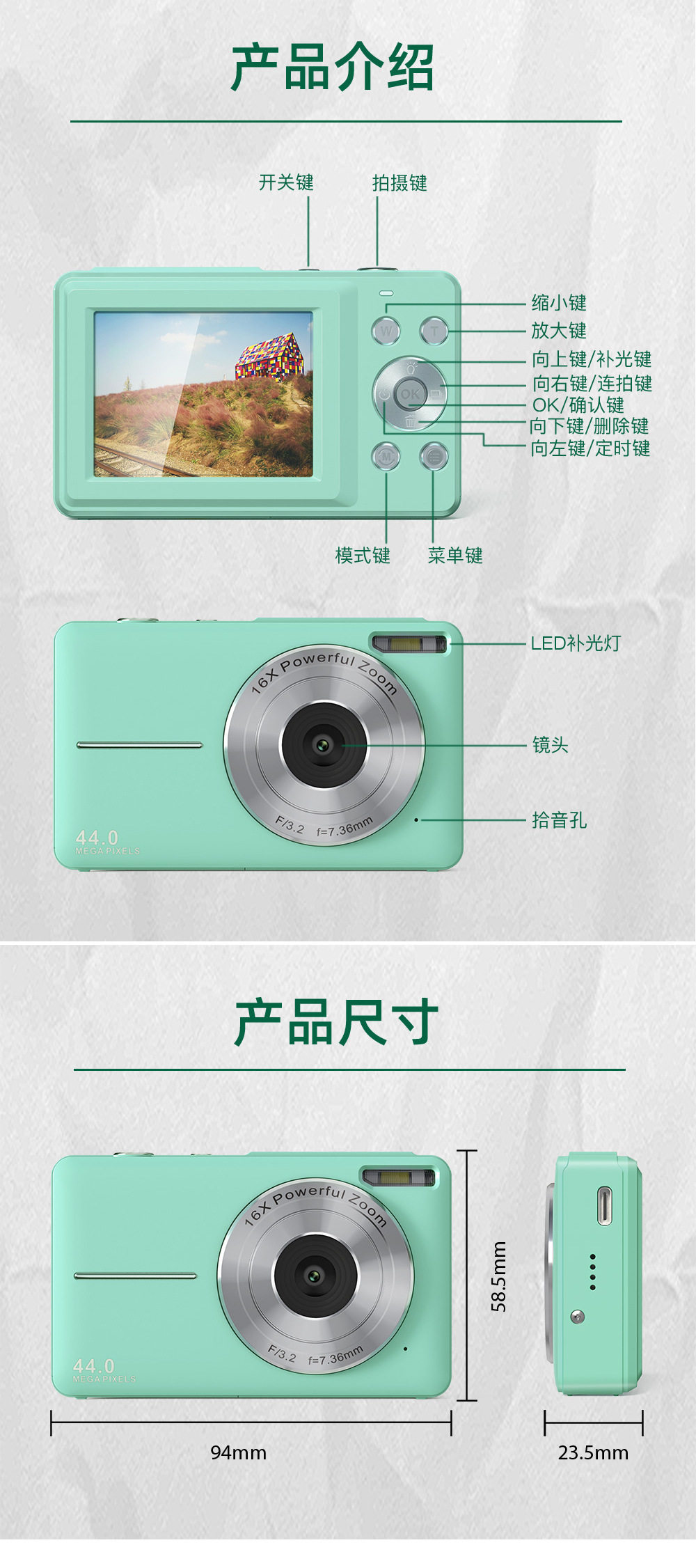 | Body color | Black,Pink,Green,Purple,Black +32g memory card,Pink+32g memory card,Green +32g memory card,Purple+32g memory card,Black fixed focus model,Pink fixed focus model,Green fixed focus model,Purple fixed focus model |