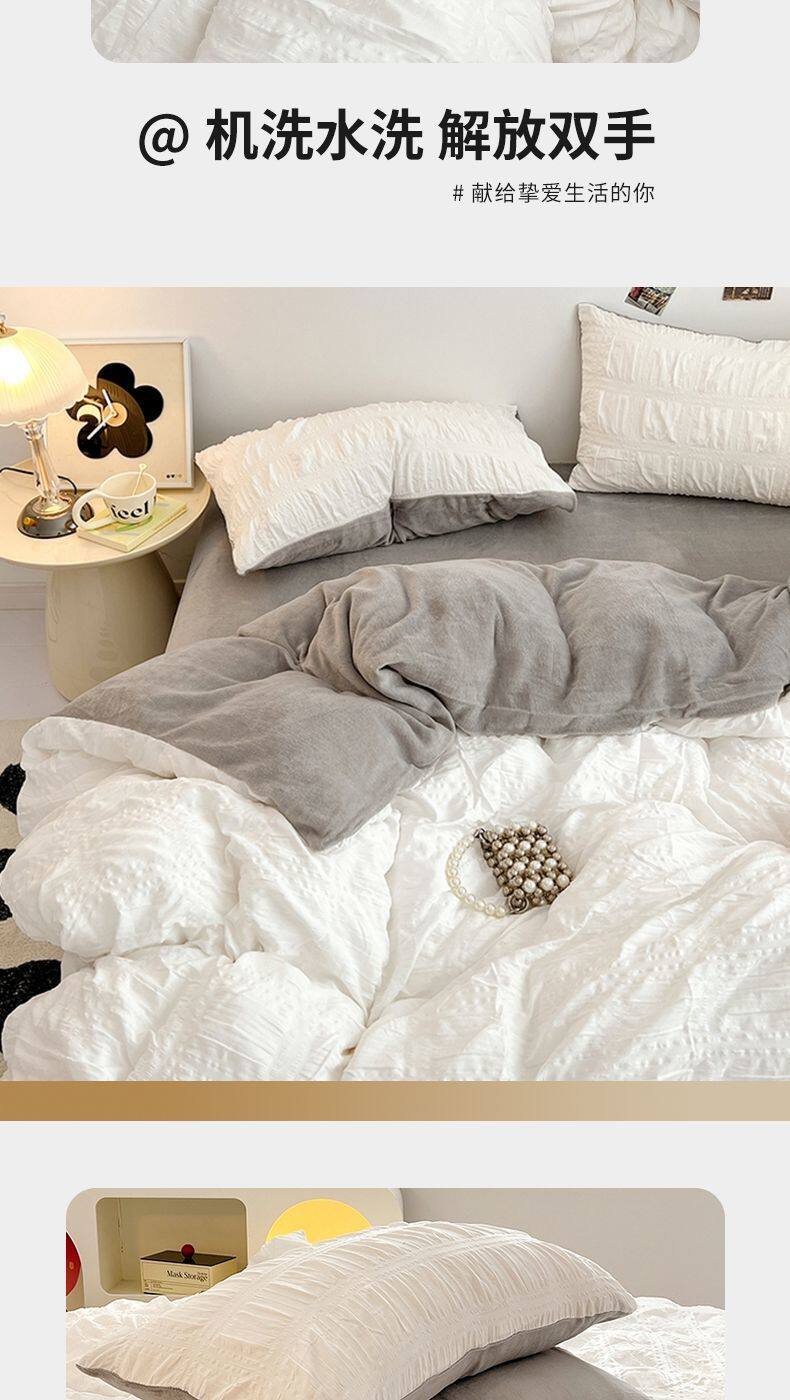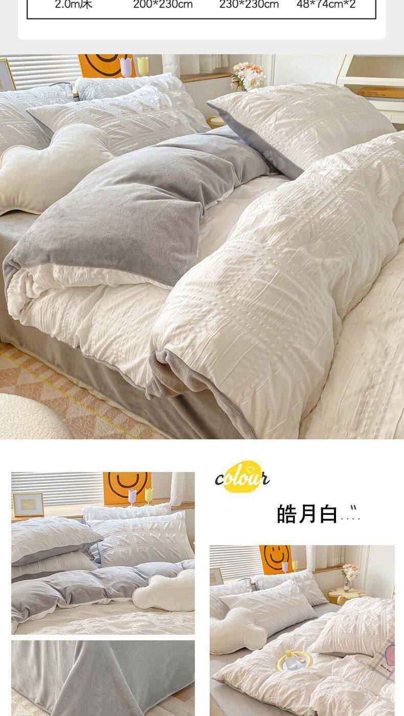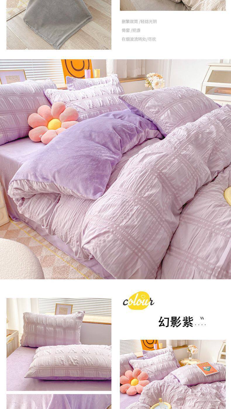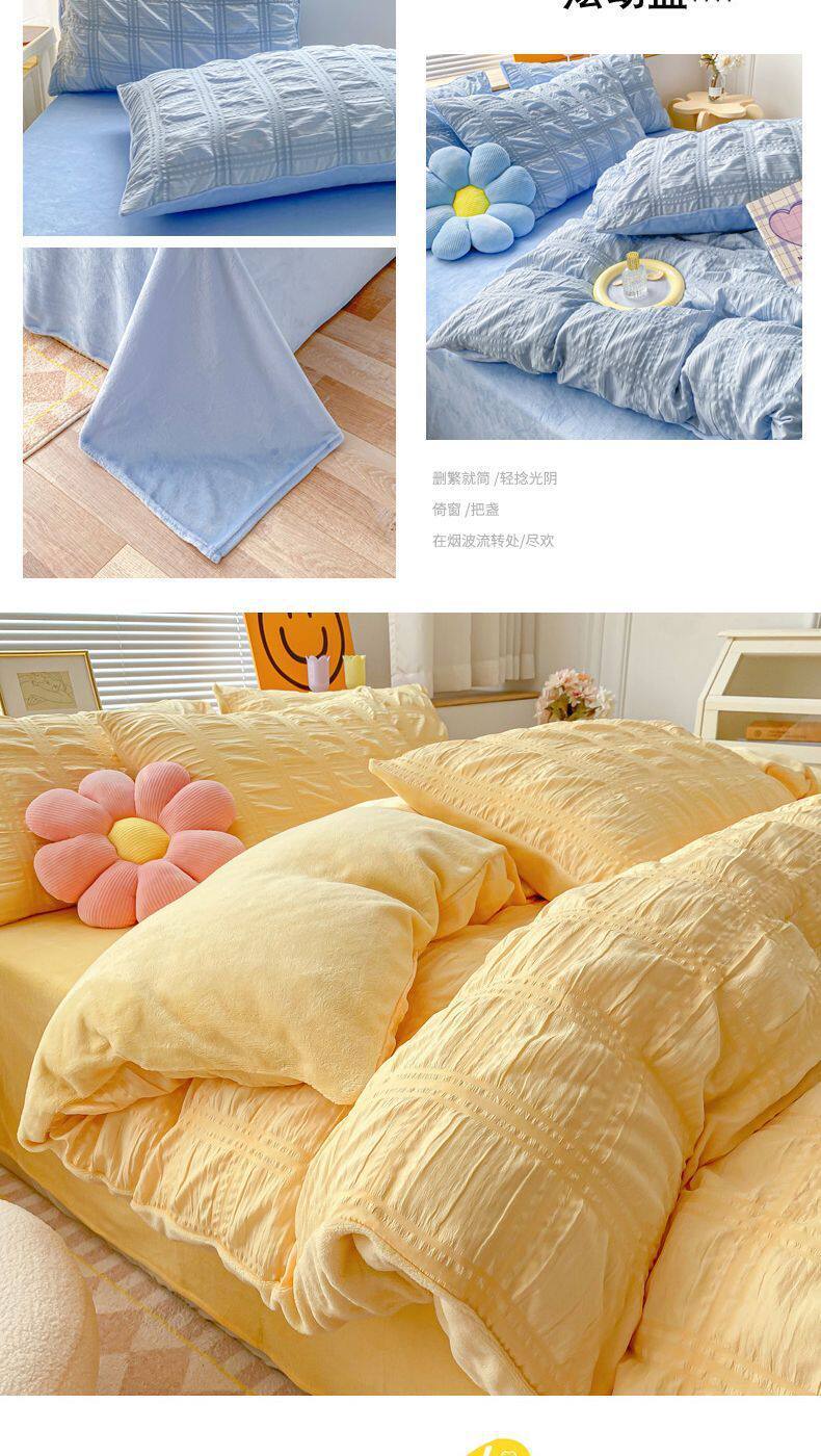 Girls' Milk Velvet Four-Piece Bed Seersucker Winter Thickeneded Velvet Quilt Cover Student Dormitory Bed Bed Sheets Three-Piece Set