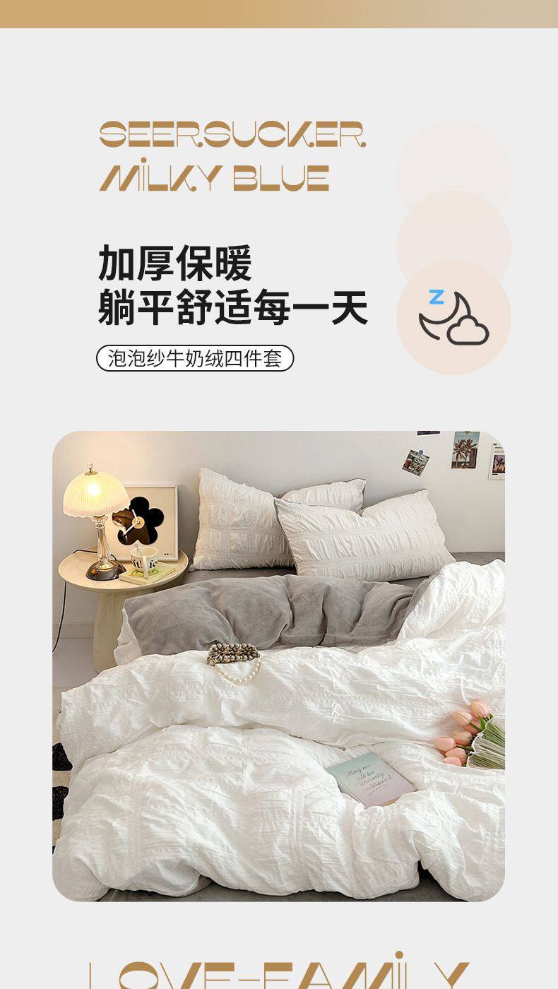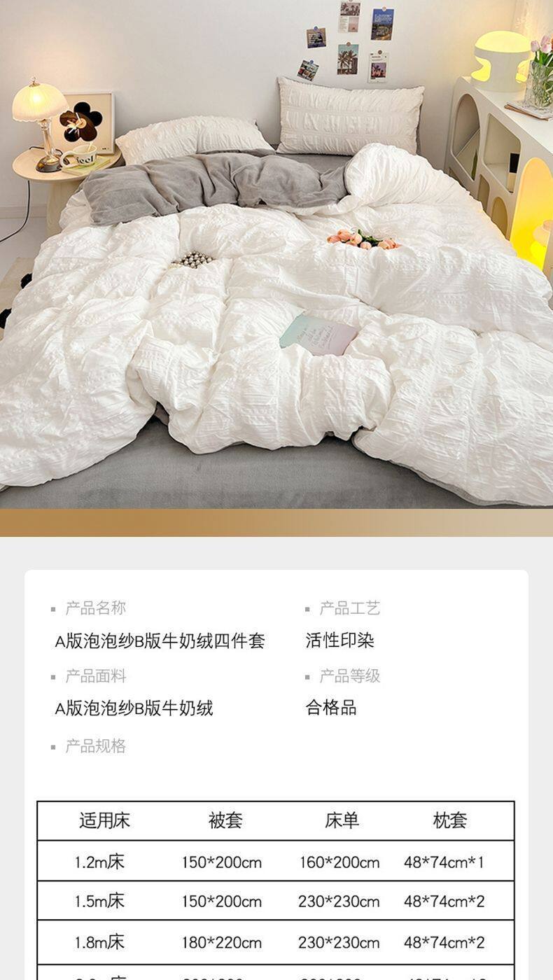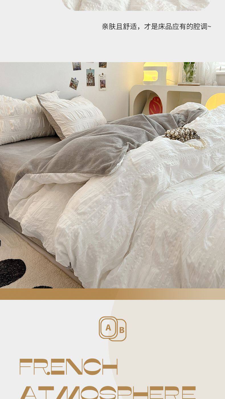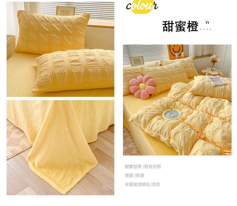 Girls' Milk Velvet Four-Piece Bed Seersucker Winter Thickeneded Velvet Quilt Cover Student Dormitory Bed Bed Sheets Three-Piece Set