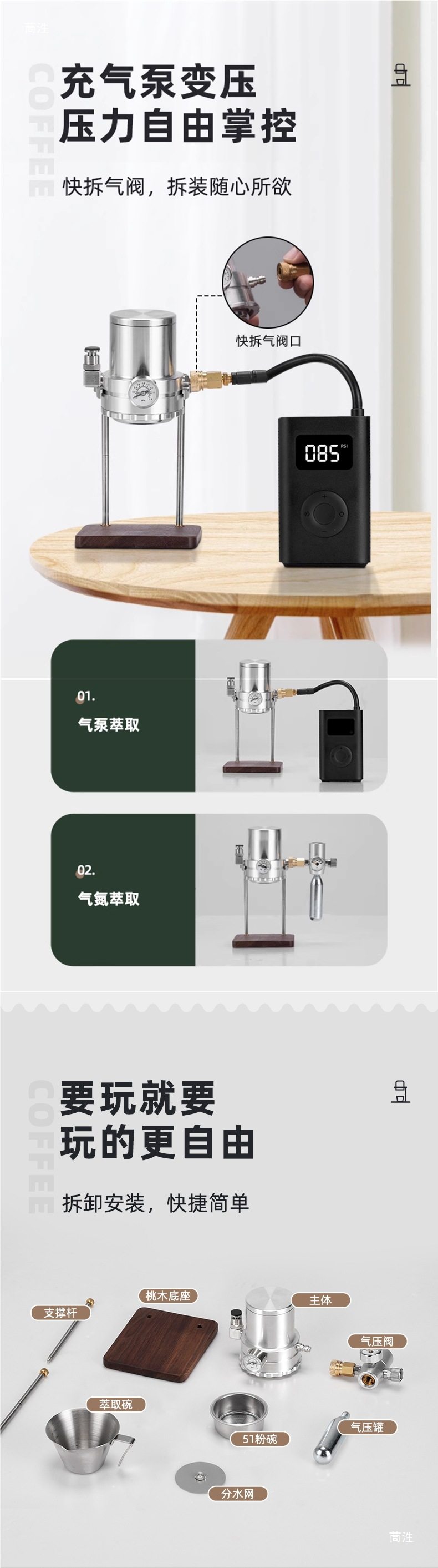| Specifications | Style a main body + walnut base + cup (needs to be used with an air pump),Style a body + walnut base + pressure reducing valve + cup (need to purchase your own air egg),Style a main body + stainless steel base + cup (needs to be used with an air pump),Style a body + stainless steel base + pressure reducing valve + cup (need to purchase your own air egg) |