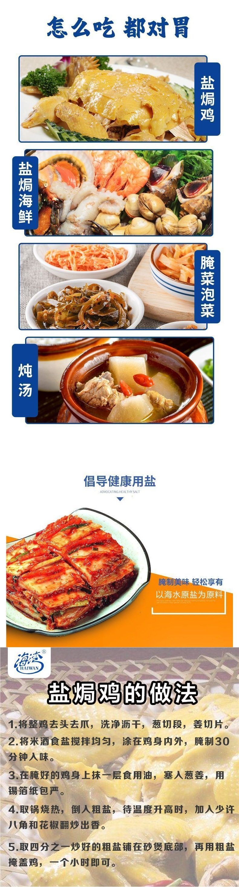 | Packaging specifications | 1 bag of sun-dried sea salt (1.0kg) not iodized,2 bags of sun-dried sea salt (2kg) not iodized,3 bags of sun-dried sea salt (3kg) not iodized,5 bags of sun-dried sea salt (5kg) not iodized |