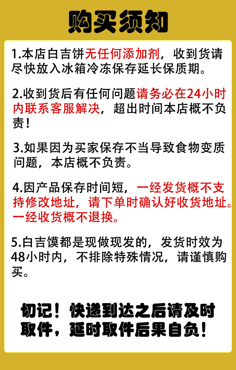 | Packaging specifications | 5 handmade white steamed buns for early adopters [single 65-70g, sterilized packaging],10 handmade white steamed buns with a diameter of 11cm [65-70g each, sterilized packaging],10 handmade white steamed buns with a diameter of 12cm [75-80g each, sterilized packaging],20 handmade white steamed buns with a diameter of 11cm [65-70g each, sterilized packaging],20 handmade white steamed buns with a diameter of 12cm [75-80g each, sterilized packaging],40 handmade white steamed buns with a diameter of 11cm [65-70g each, sterilized packaging],30 handmade white steamed buns with a diameter of 12cm [78-80g each, sterilized packaging],120 handmade white steamed buns with a diameter of 11cm [single 65-70g, commercial wholesale],120 handmade white steamed buns with a diameter of 12cm [single 75-80g, commercial wholesale],100 handmade white steamed buns with a diameter of 14cm [single 95-100g commercial wholesale] |