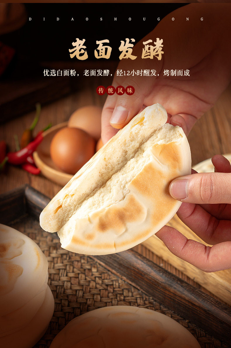 Handmade White Bread Rolls, Henan White Crust Sesame Cakes, Shaanxi Meat Buns, Bread Dough, Xi'An Old Dough Fermented Bread Commercial Use