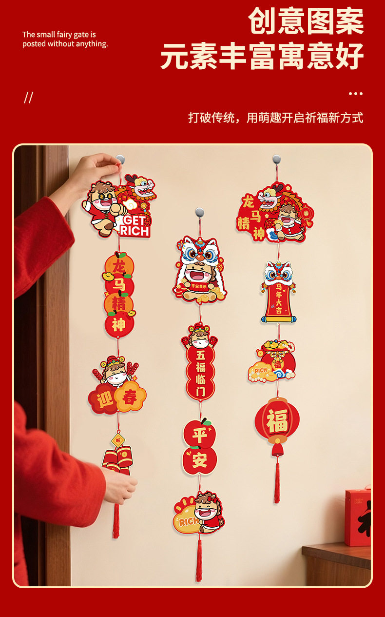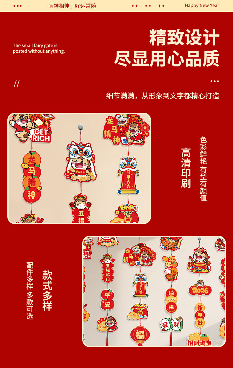 New Year's Day Decoration Supplies 2026 Year of the Horse Decorative Pendants Background Wall Layout Spring Festival Atmosphere Long Pendants