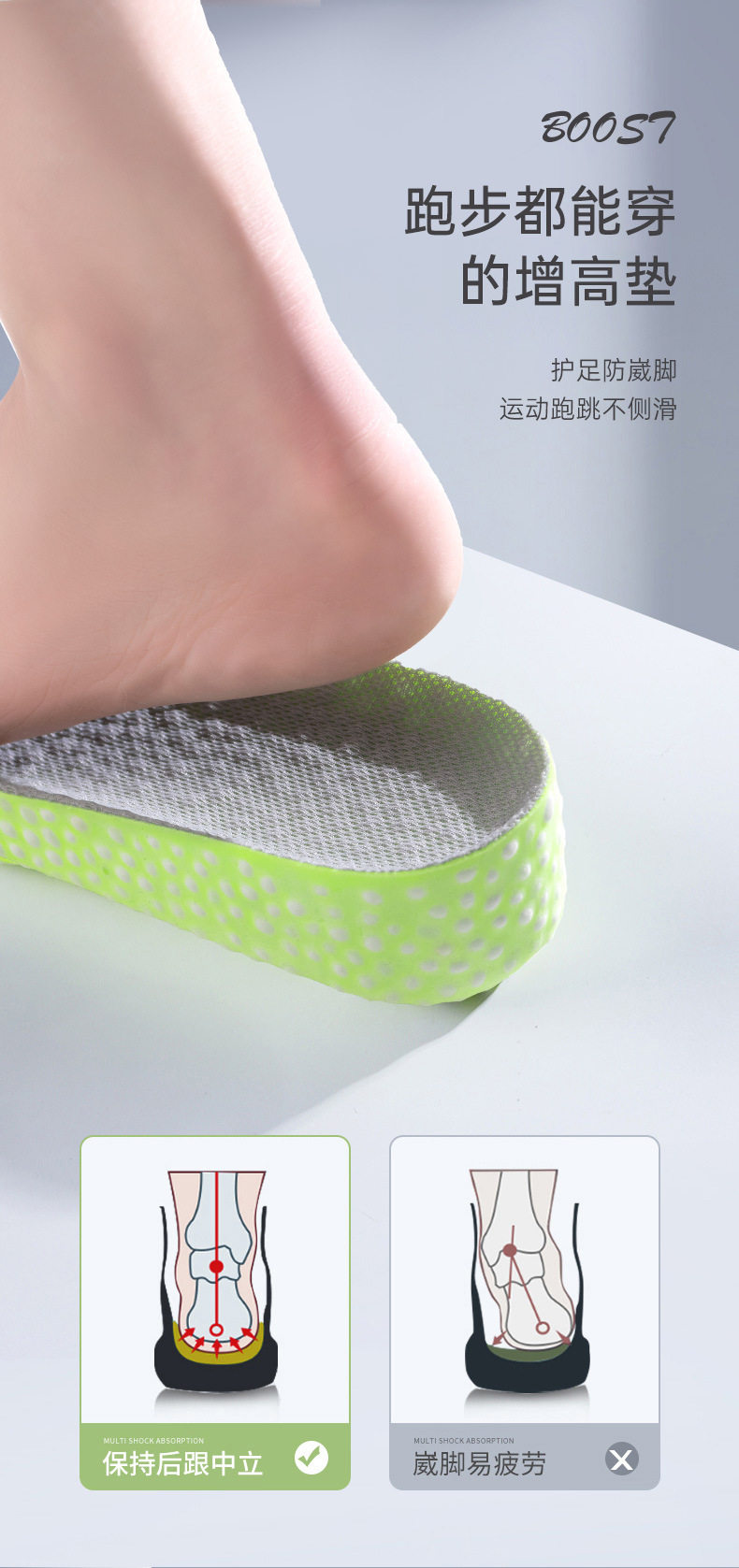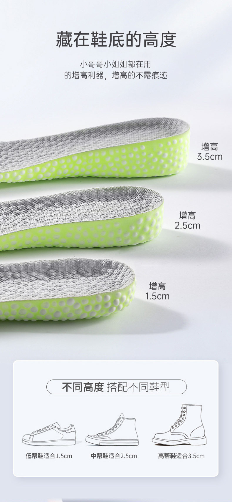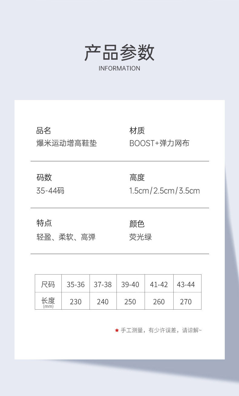 Popcorn Sports Height-Increasing Insoles for Men, Sweat-Absorbent and Poop-Feeling, Super-Soft Inner Height-Increasing Insoles That Are Invisible and Not Tired after Standing for a Long Time