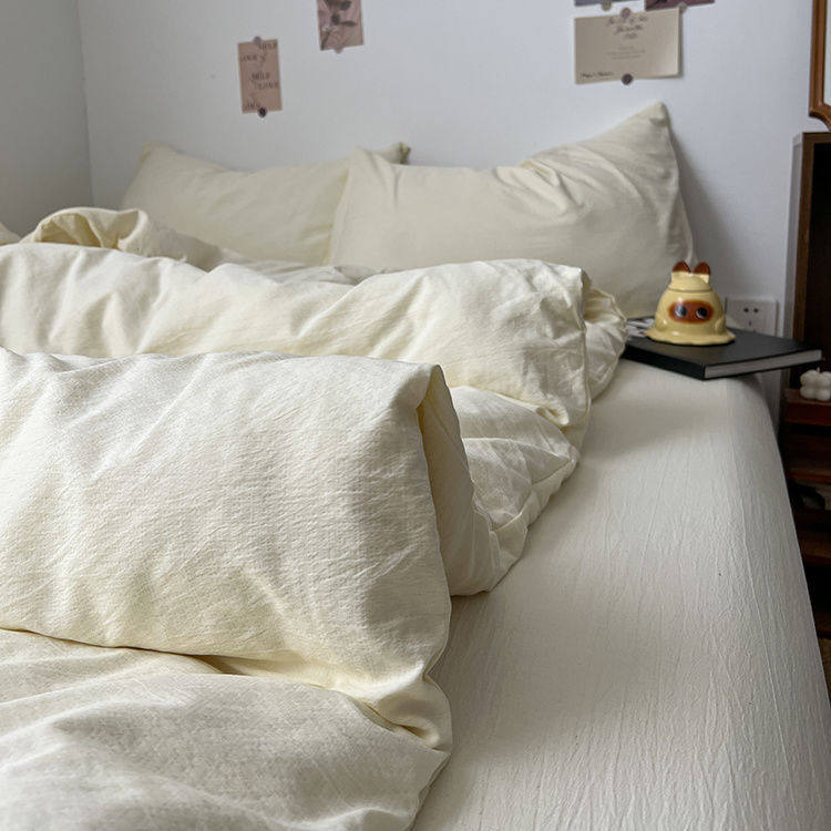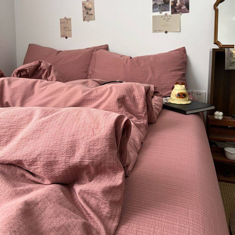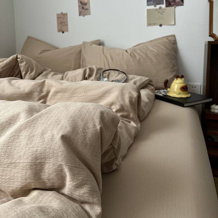 Category a Maternal and Infant Ins Simple Pure Color Super Soft Double-Layer Yarn Four-Piece Bed Bed Sheets Quilt Cover Student Dormitory Three-Piece Bed Bed Sheets Set