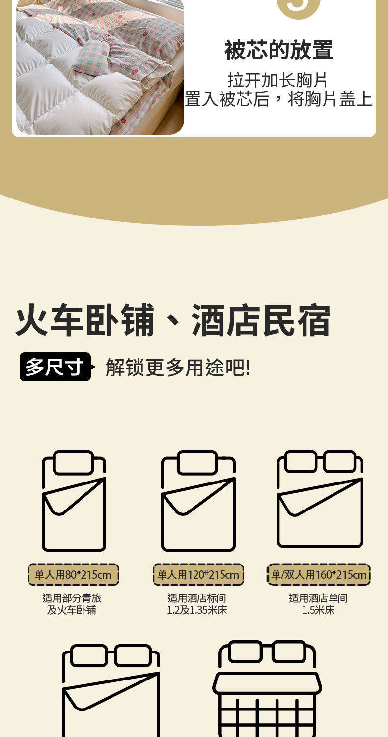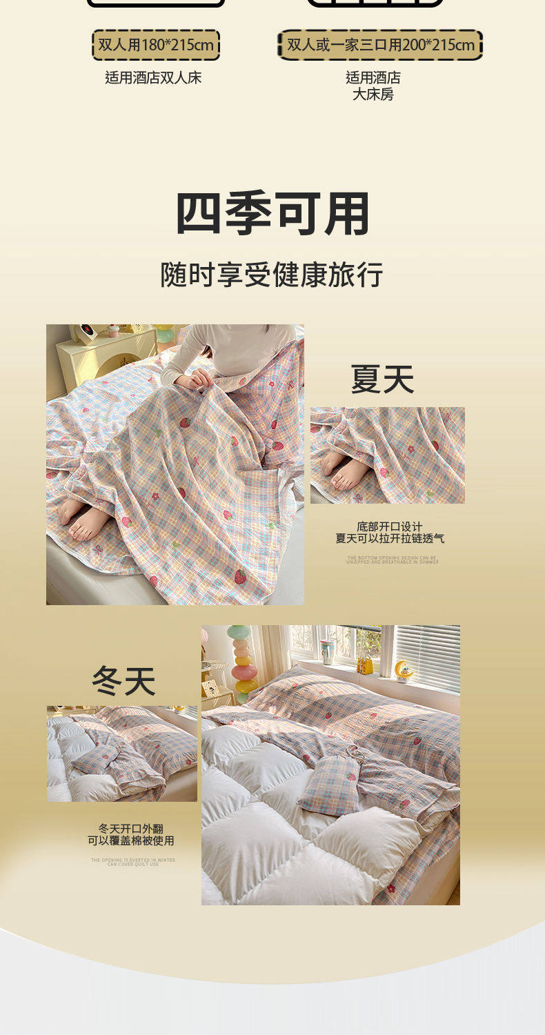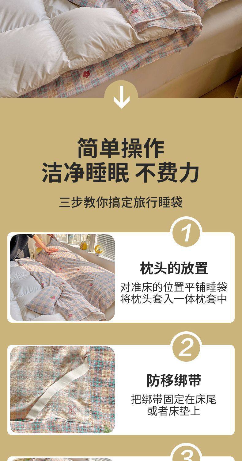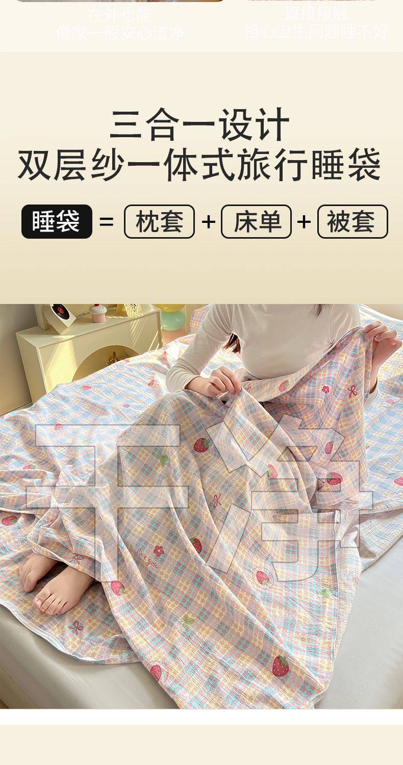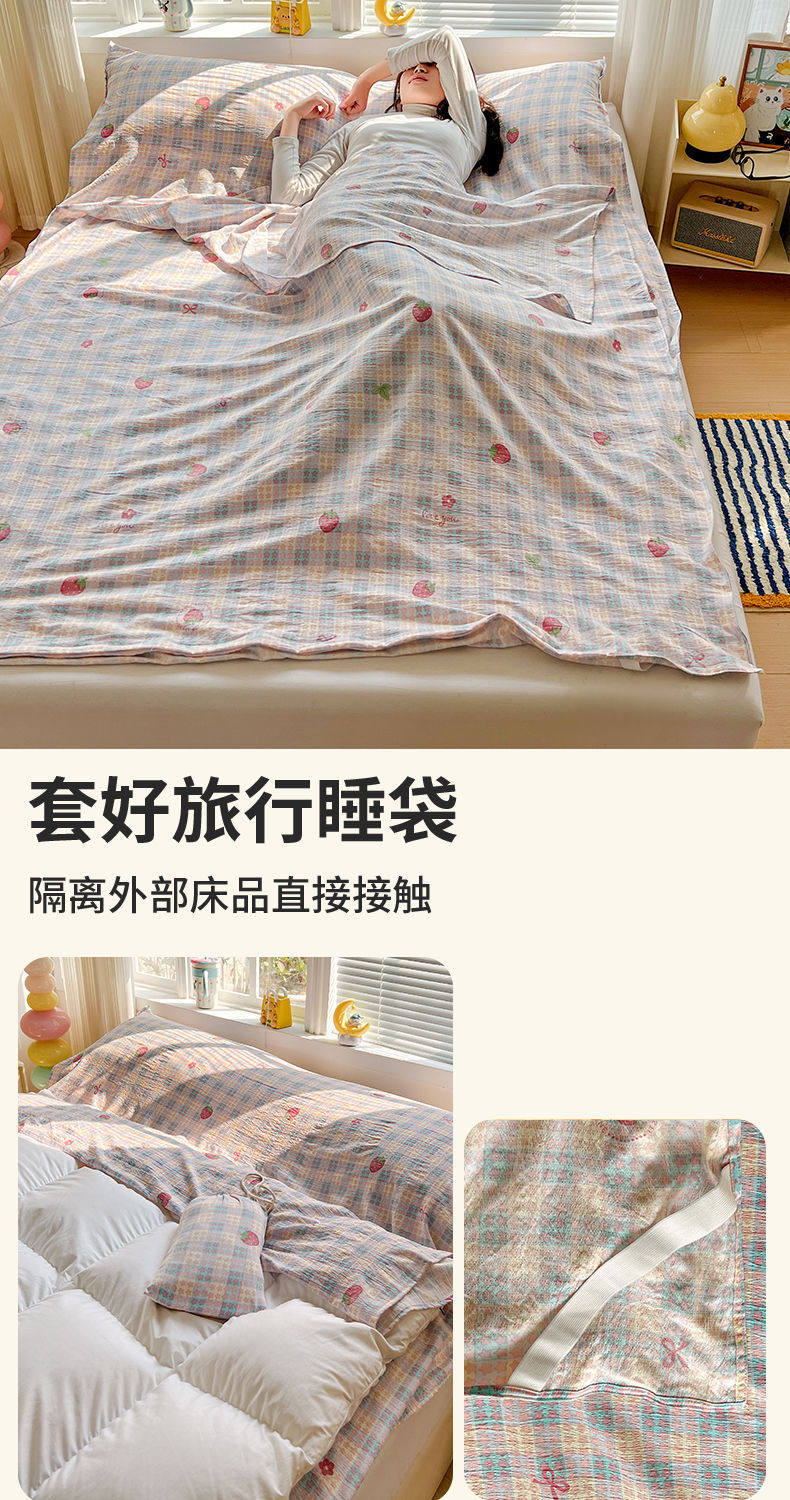 Cloud-Like Soft and Waxy Double-Layer Yarn Hotel Sleeping Bag, Portable Four-Piece Travel Bed Sheetss and Quilt Cover, Three-Piece Travel Set