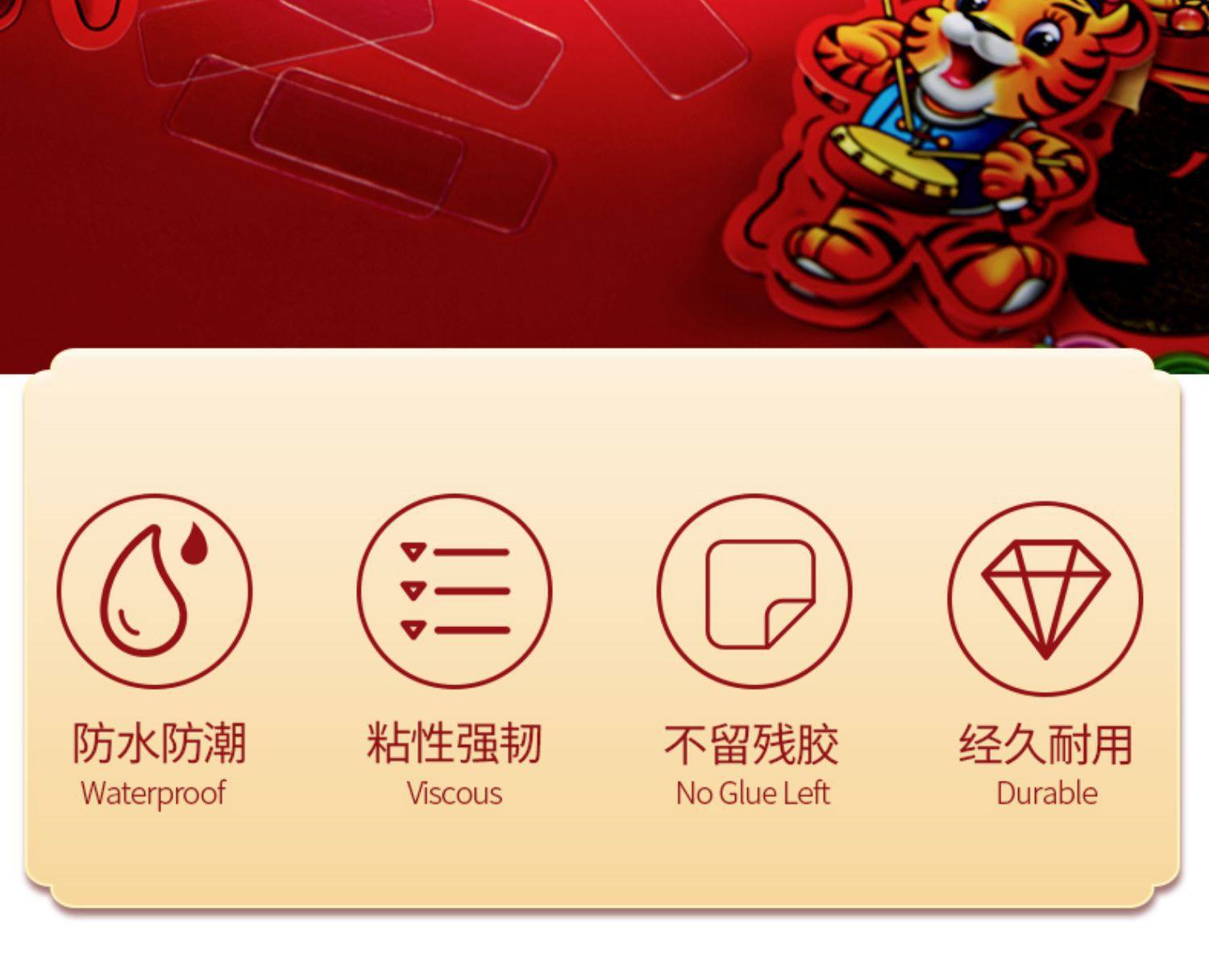 Special Double-Sided Tape for Pasting Couplets, Traceless, Transparent and Residue-Free Boxed Double-Sided Stickers, Strong Sticky Spring Festival Couplets, Sticky Notes
