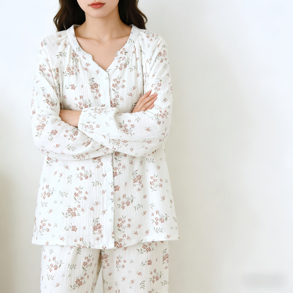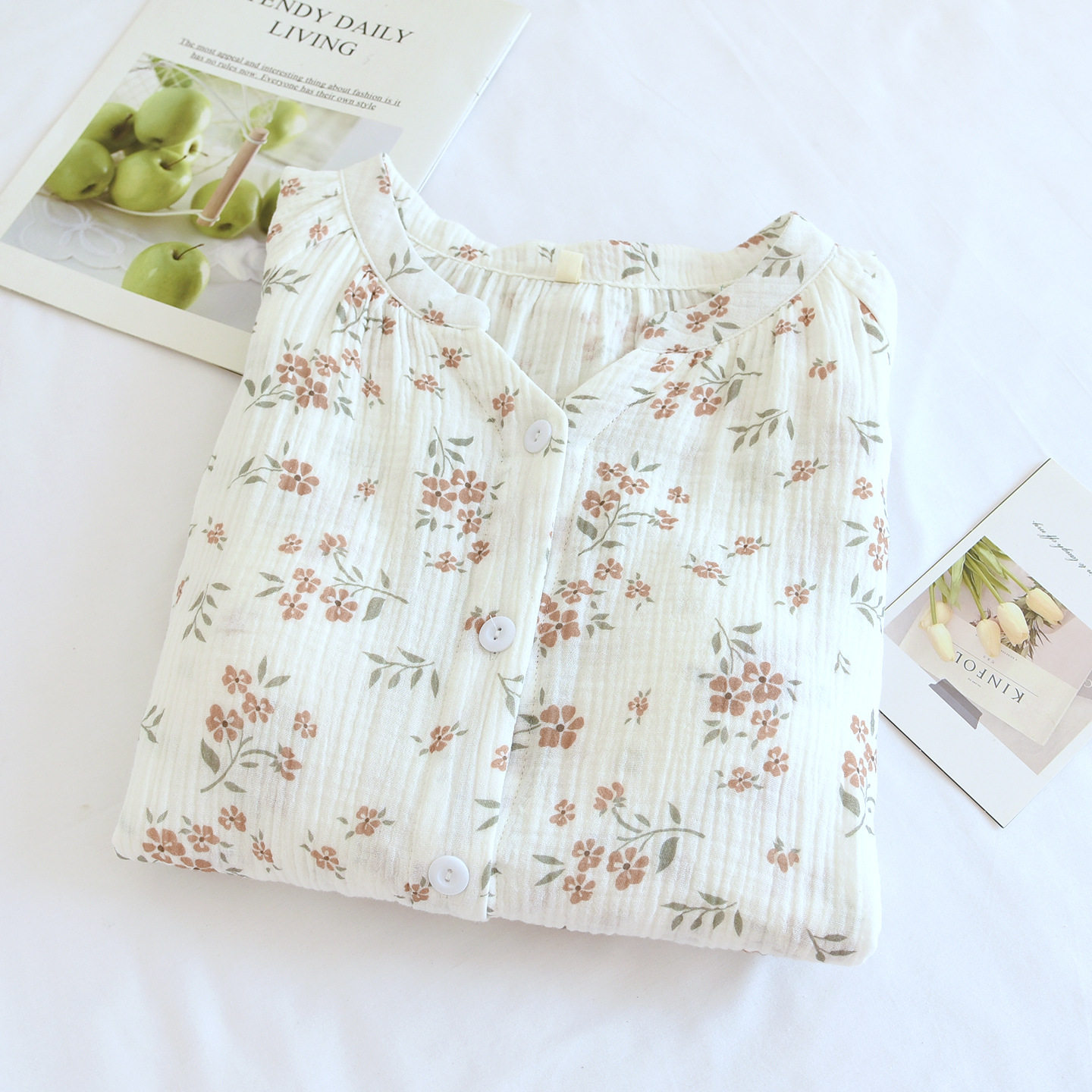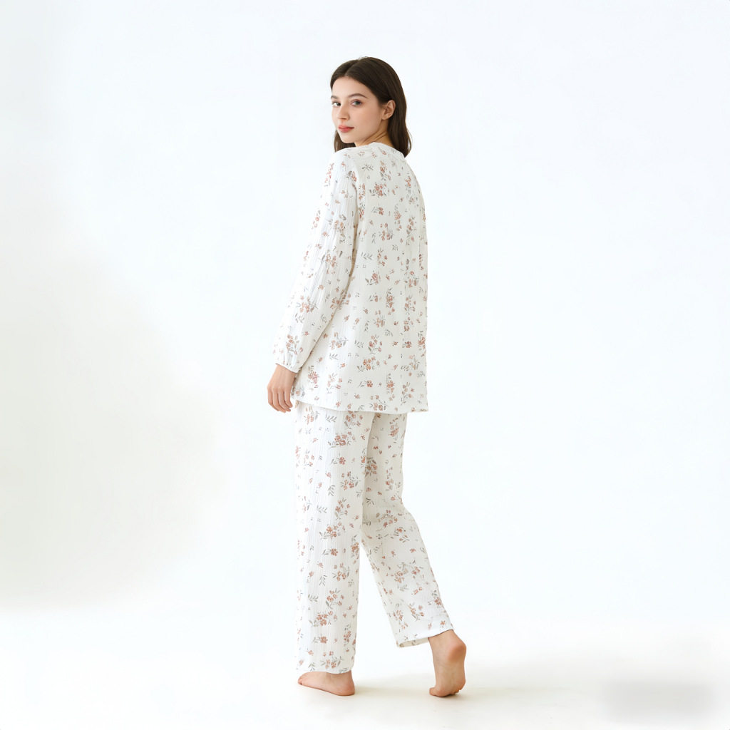 Spring and Summer Postpartum Clothing with Breast Pads, Spring and Autumn Pure Cotton Gauze Postpartum Nursing Pajamas, Pregnant Women's Summer Thin Four-Season Clothing