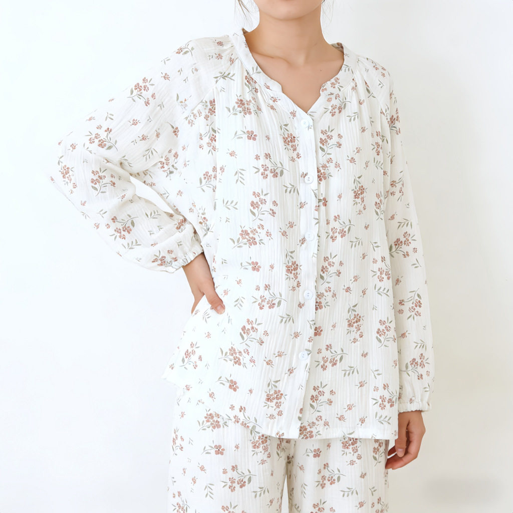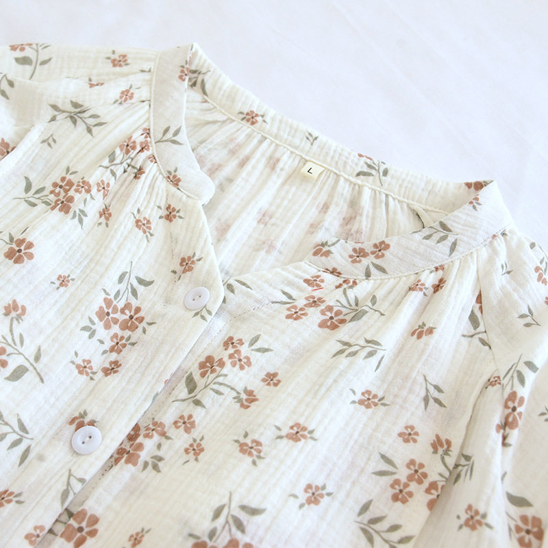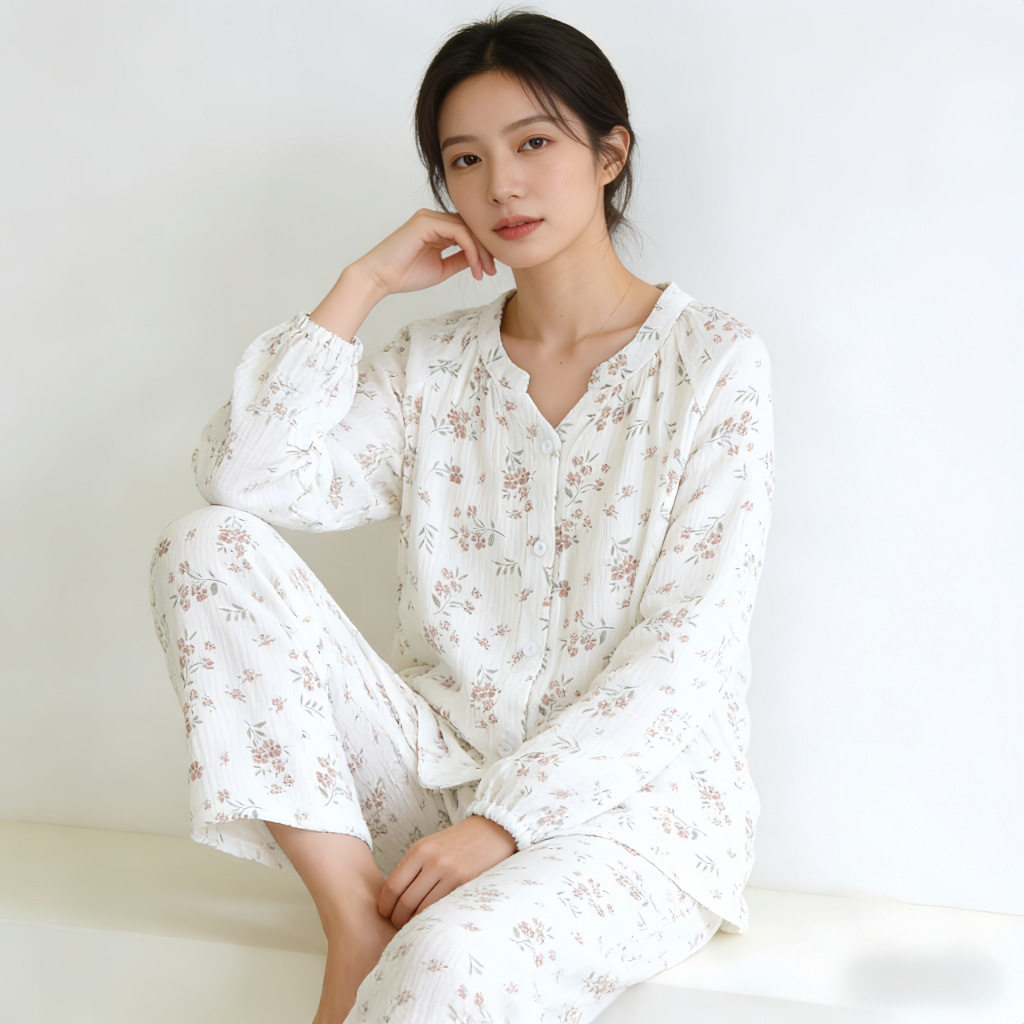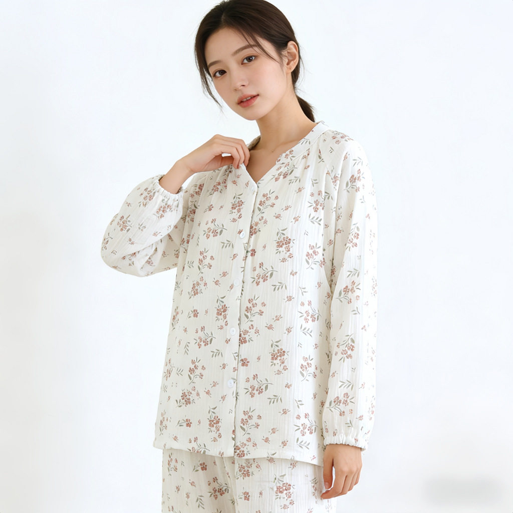 Spring and Summer Postpartum Clothing with Breast Pads, Spring and Autumn Pure Cotton Gauze Postpartum Nursing Pajamas, Pregnant Women's Summer Thin Four-Season Clothing