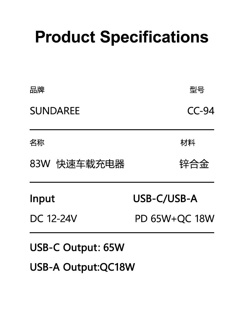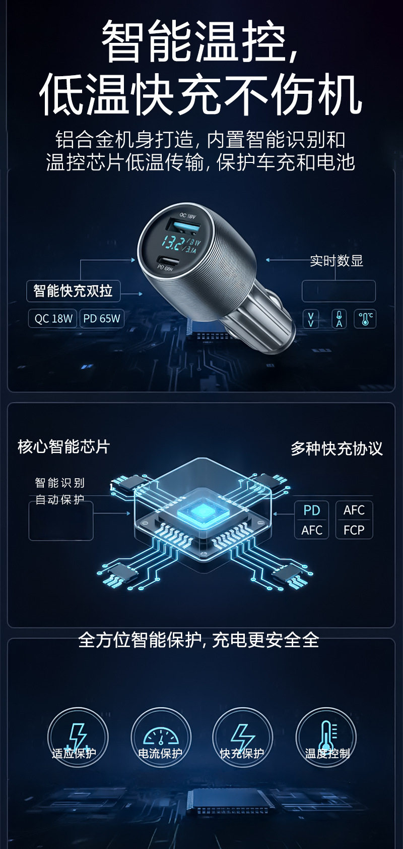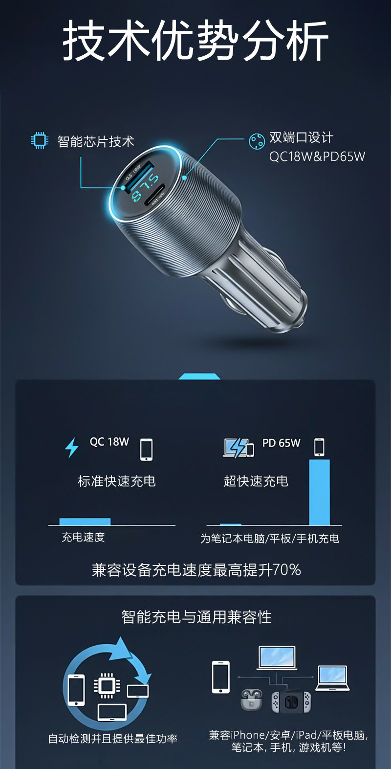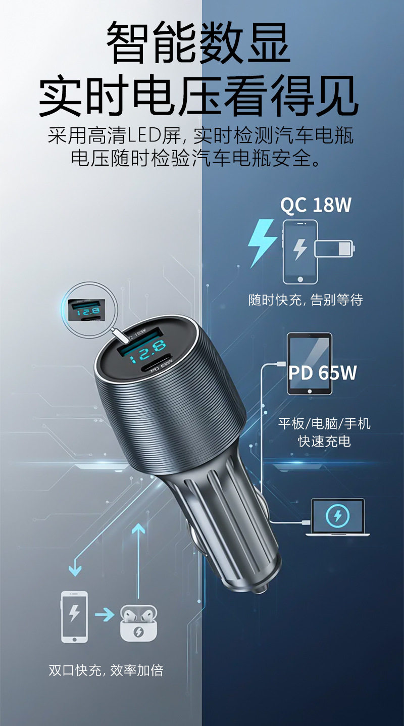| Model | Pc material efficient heat dissipation ★ Durable [pd65w+qc18w] intelligent digital display |