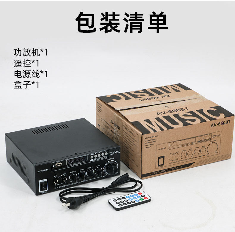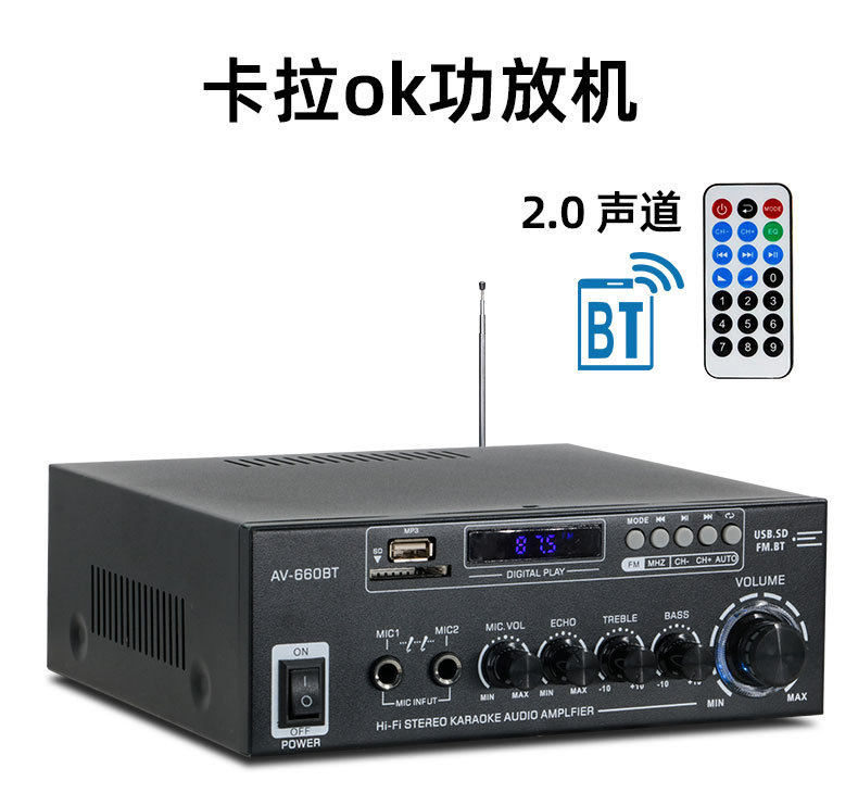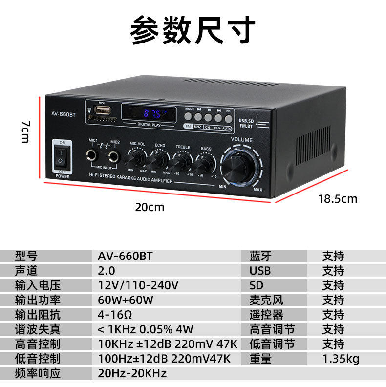 Av-660Bt High-Power Version 180W Two-Channel Home Car Audio Wide Voltage Version Bluetooth Amplifier