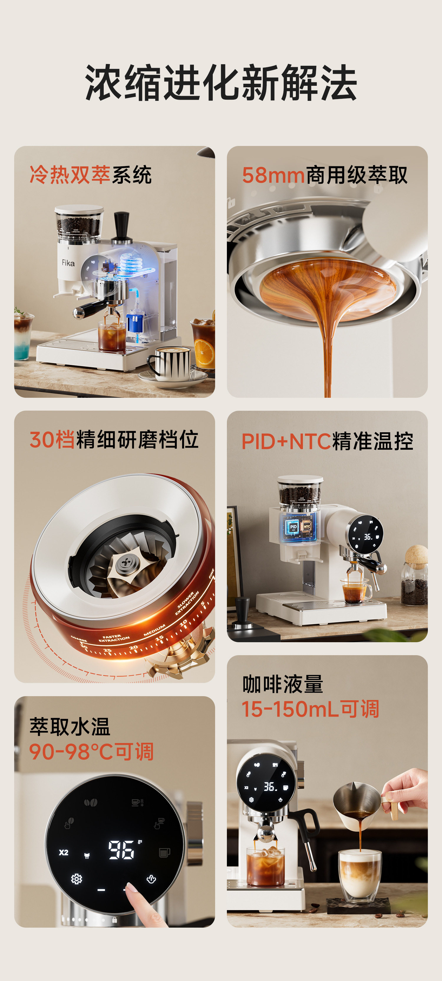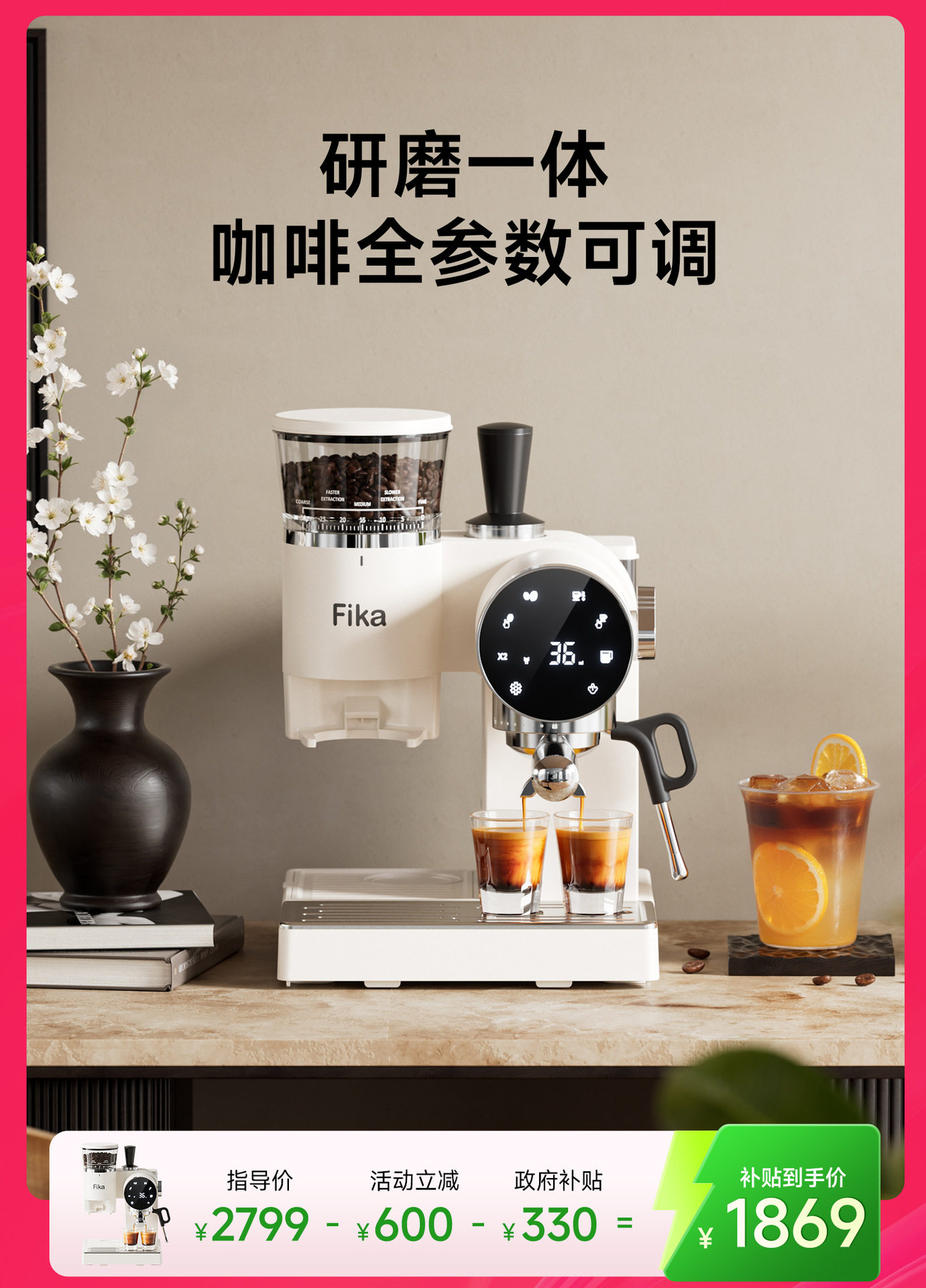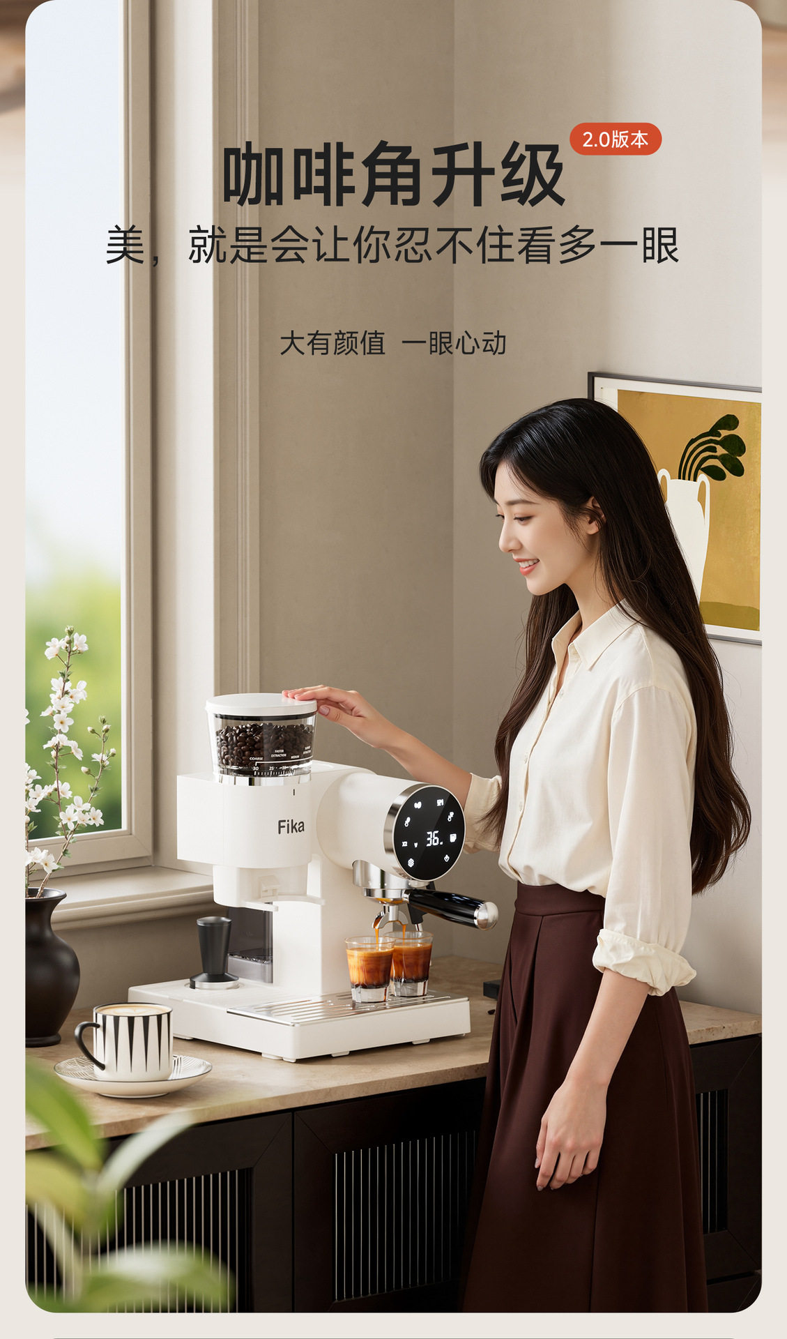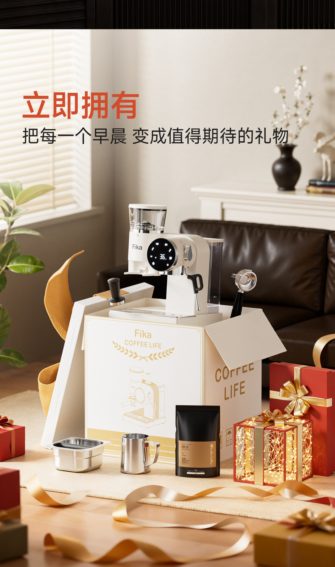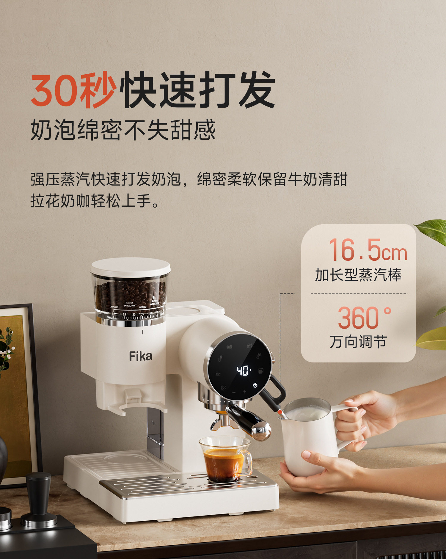 Fika Home Coffee Machine Semi-Automatic Grinding Italian All-In-One Espresso American Style