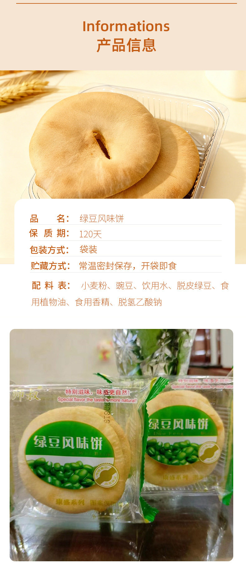 | Packaging specifications | Mung bean flavored cake |