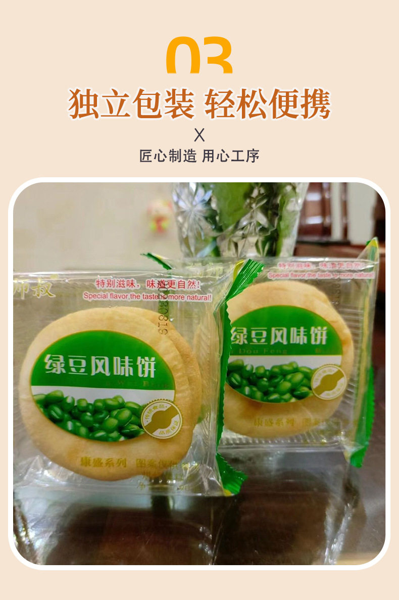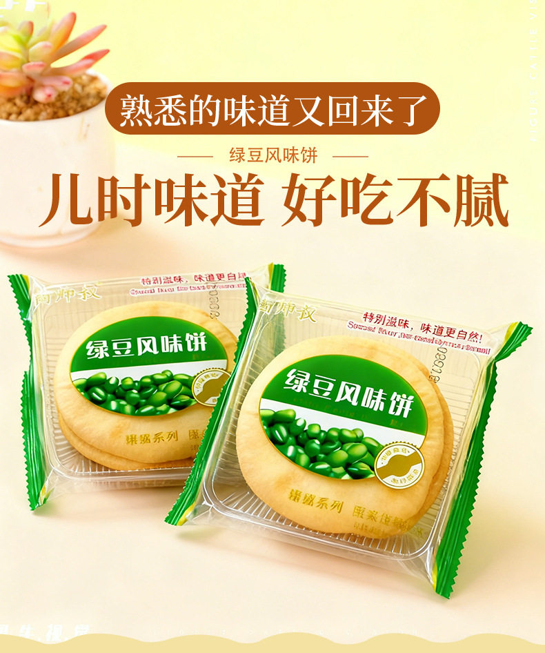 Mung Bean Flavored Cake, Traditional Old-Fashioned Mung Bean Cake, Mung Bean Pastry, Office Snacks, Snacks, Snacks Wholesale