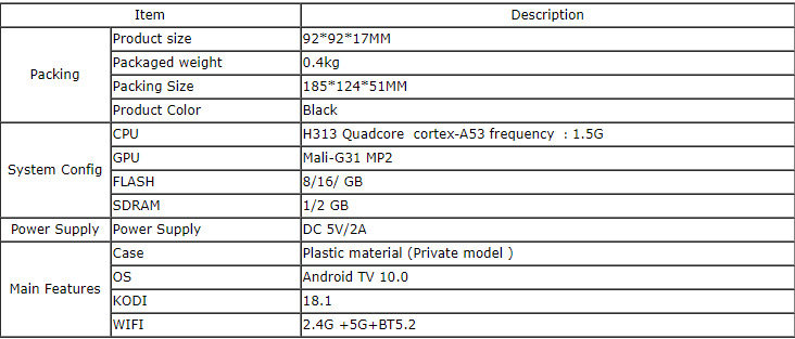 | Package list | Power supply remote control hdmi cable manual set-top box color box |