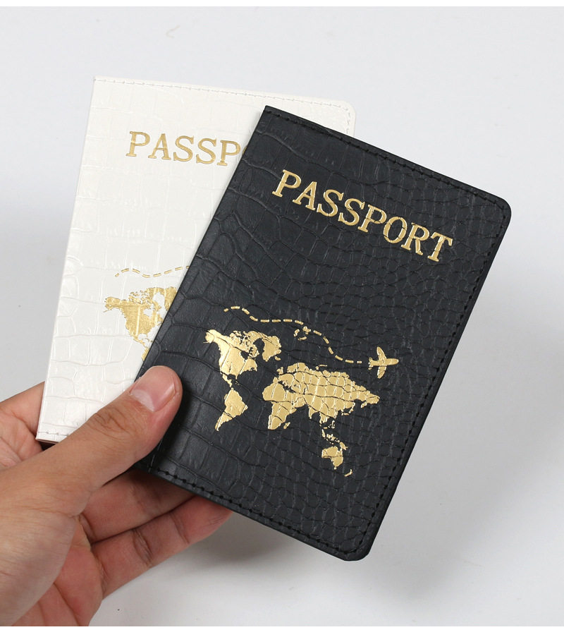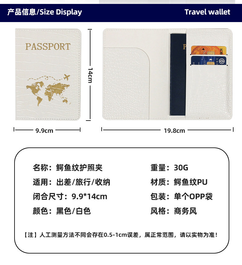 Black and White Cross-Border Temu Crocodile Pattern Pu Leather Passport Protection Set Leather Map Passport Holder Oil Edge Passport Bag