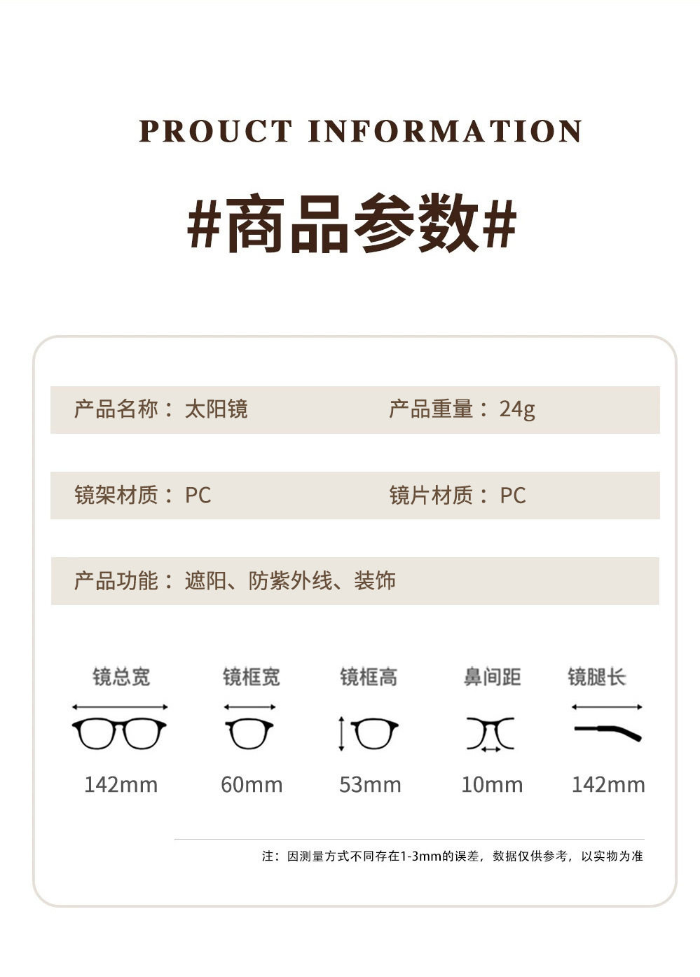 | Frame color | Black frame gray film,Red frame, grey lens,White frame, grey lens,Transparent tea frame double tea piece,Tea bean flower ash slices,White bean curd double tea tablets,Black frame, white lens,Red frame white film,Transparent frame white lens,Transparent tea frame white tablets,Tea bean flower white tablets,White bean curd slices |