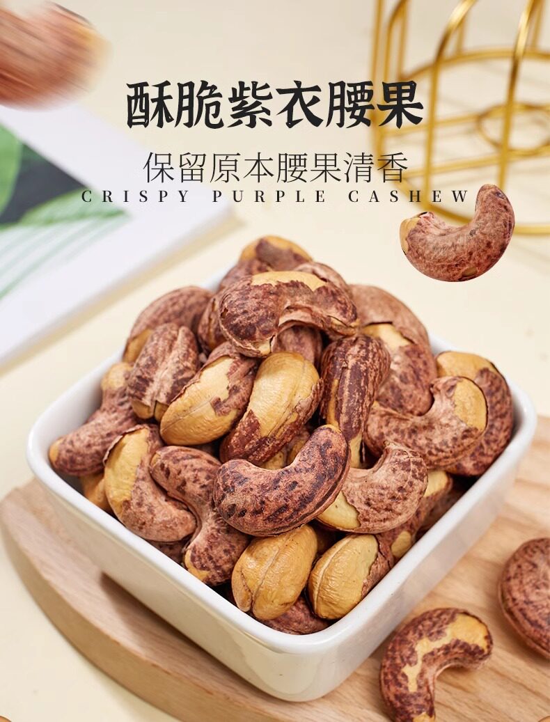 New Arrival Cashew Nuts with Skin, Large Capsules, Bagged Purple Nuts, Cashew Nuts, Original Flavor Roasted Seeds and Nuts, Casual Snacks Wholesale