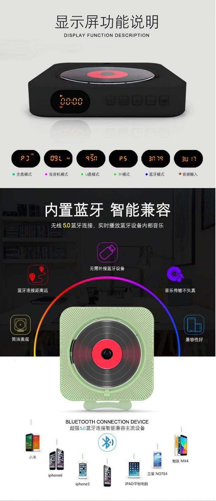 Cross-Border Portable Student English Repeater Home Wall-Mounted Bluetooth Cd Player Dual-Speaker Cd Player