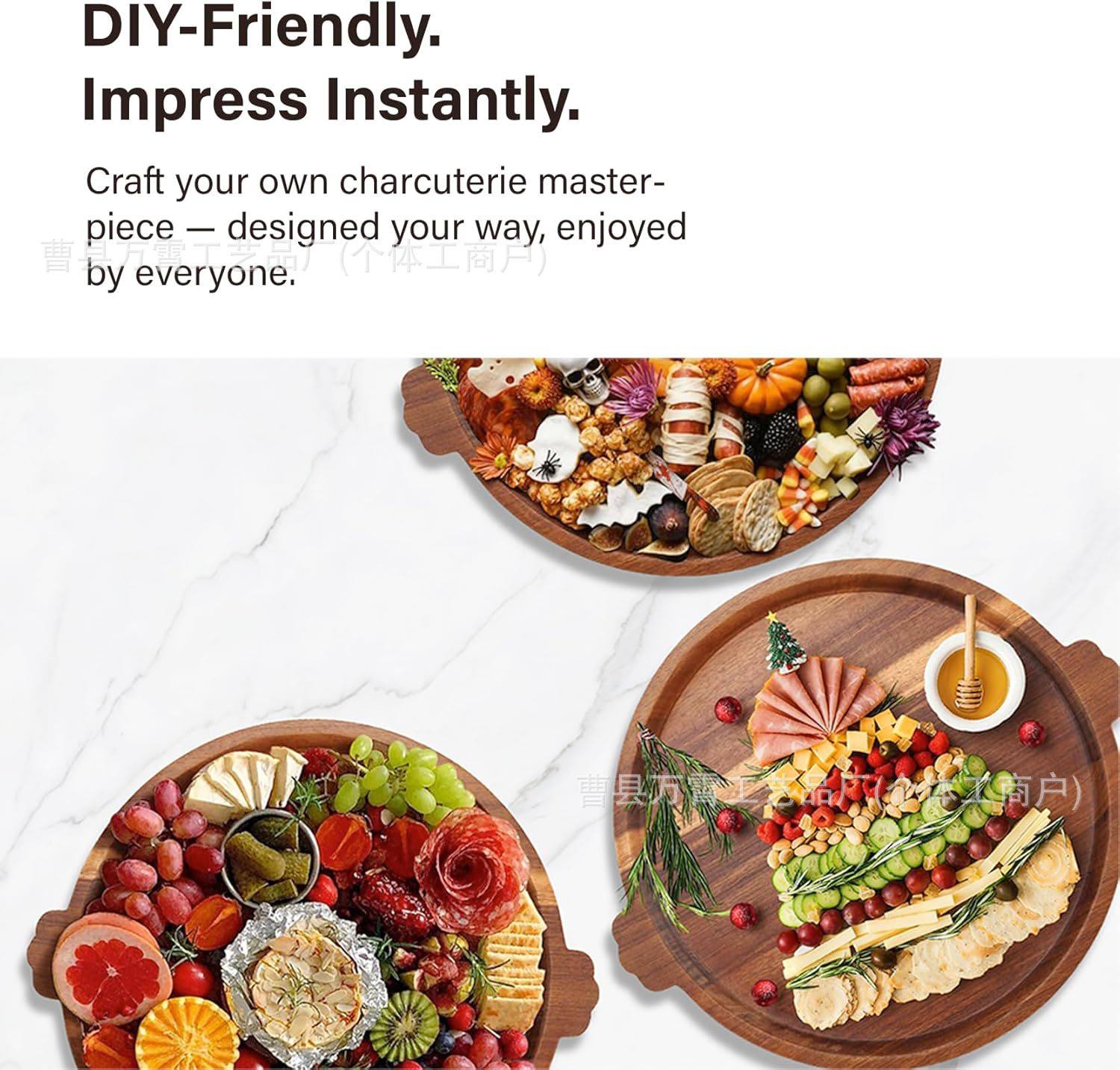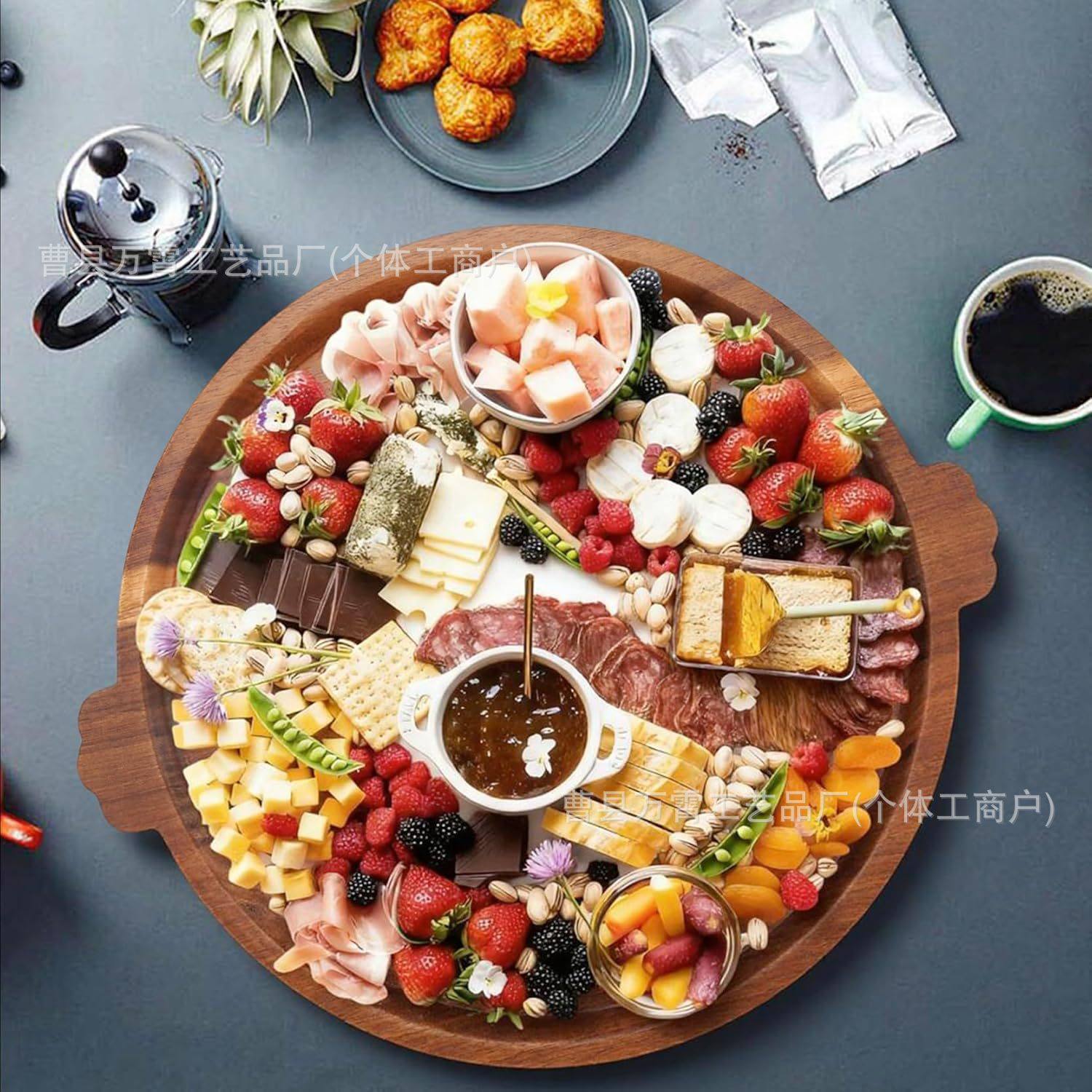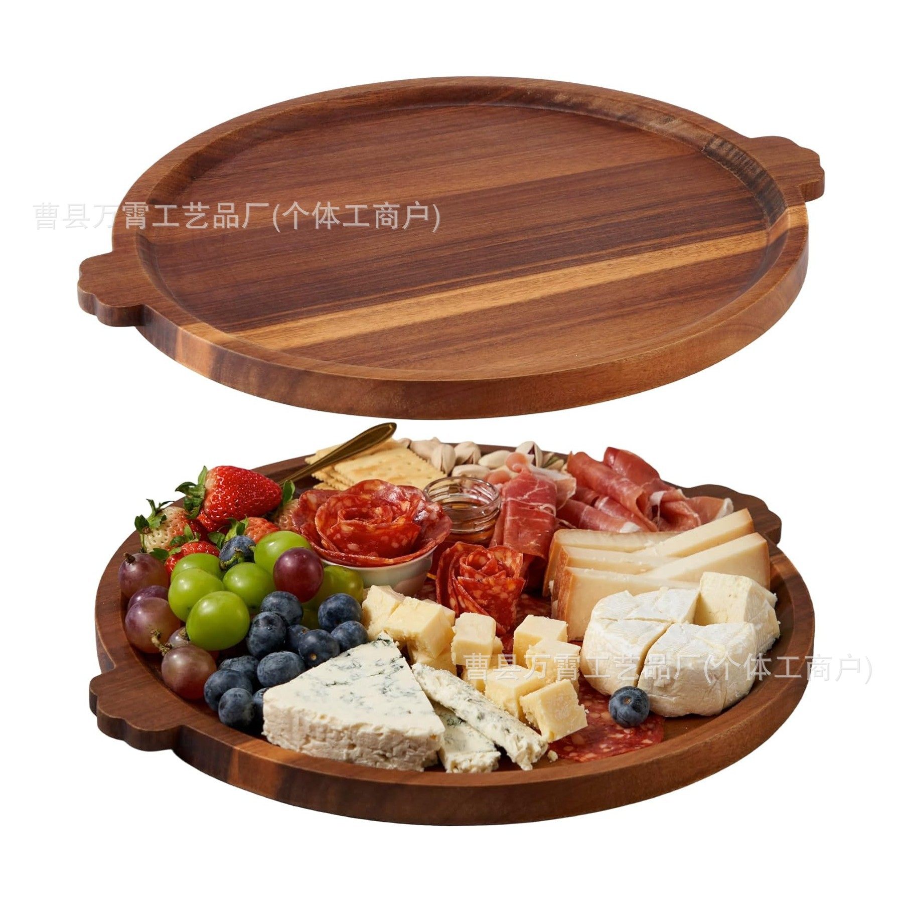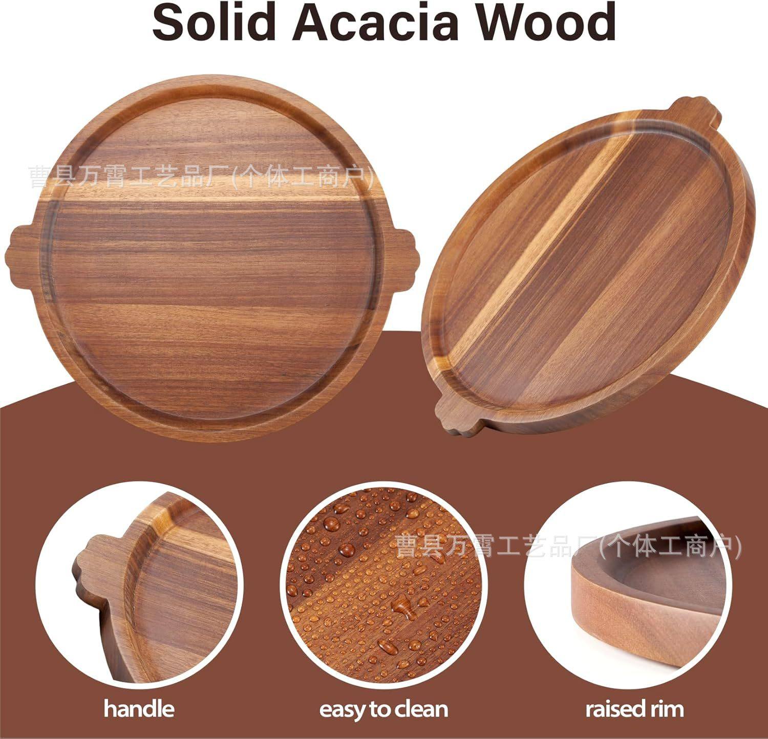 Japanese-Style Round Acacia Wood Household Serving Tray Coffee Table Decoration Tray Kitchen Pizza Tray Household Dried Fruit Tray